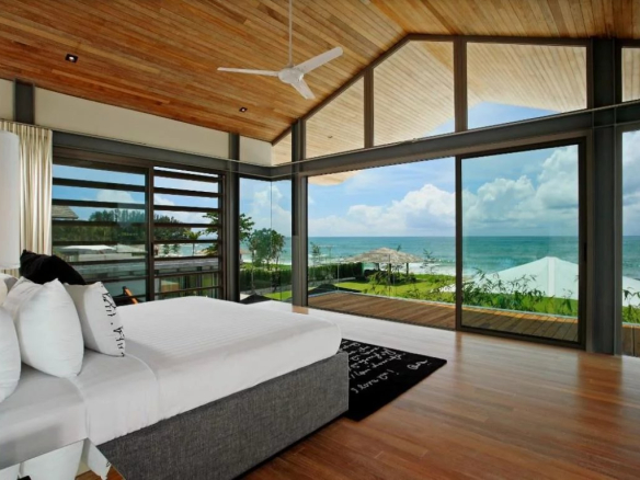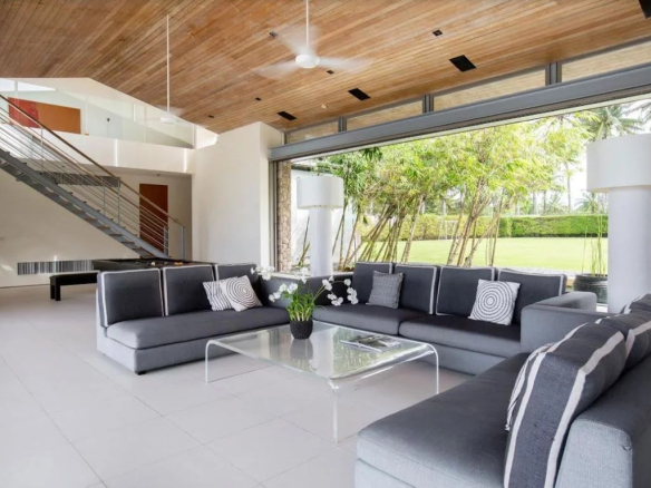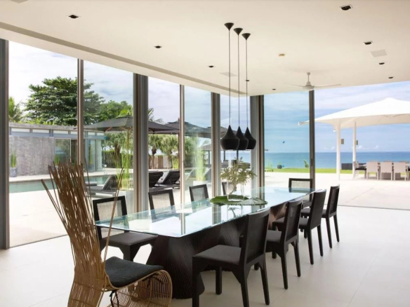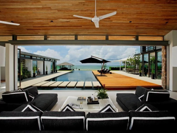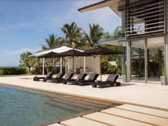 Situé sur un peu moins de 3 rai (4 478 m²) de terrain en bord de mer, Essenza offre un havre de plein air pour les amateurs de plage. La vaste piscine à débordement de 25 x 6 m offre une vue imprenable sur l’océan, complétée par des chaises longues sur la terrasse élégante. Un coin repas barbecue, ombragé par un auvent, est parfait pour des événements ou des réunions de famille décontractées. La pelouse en bord de mer comprend une Sala au toit en pente offrant une vue imprenable sur la mer, tandis que la vaste pelouse arrière offre un espace pour diverses activités sportives.