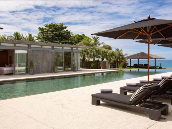 La Villa Essenza offre une expérience inégalée en bord de mer, captivant ceux qui ont la chance de découvrir cette magnifique propriété et son emplacement idéal. Nichée le long de la plage immaculée de Natai, à seulement 30 minutes en voiture de l’aéroport international de Phuket, cette chic villa de six chambres présente un design en forme de U enveloppant une piscine centrale, reliant de manière transparente des espaces de vie et de salle à manger ouverts et lumineux à la terrasse accueillante. et des espaces de divertissement extérieurs.