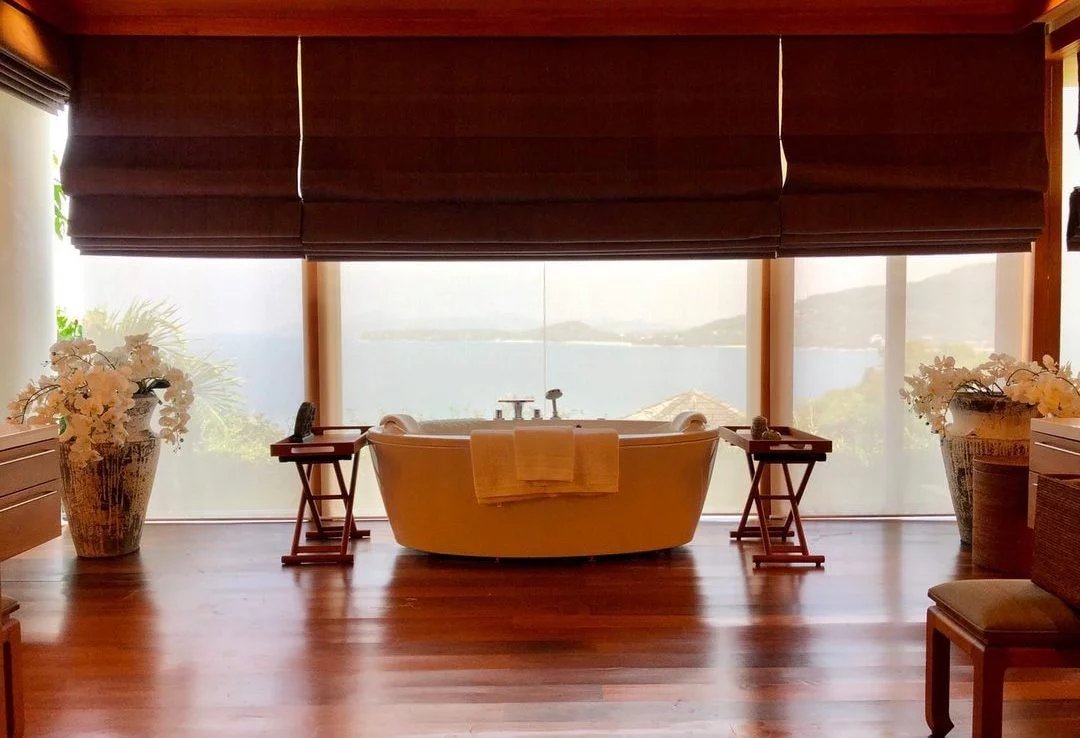 Spacieuse et luxueuse, cette belle villa de quatre chambres comprend une magnifique chambre principale avec une vue magnifique sur l’océan et trois autres chambres d’hôtes, toutes avec des salles de bains luxueuses.