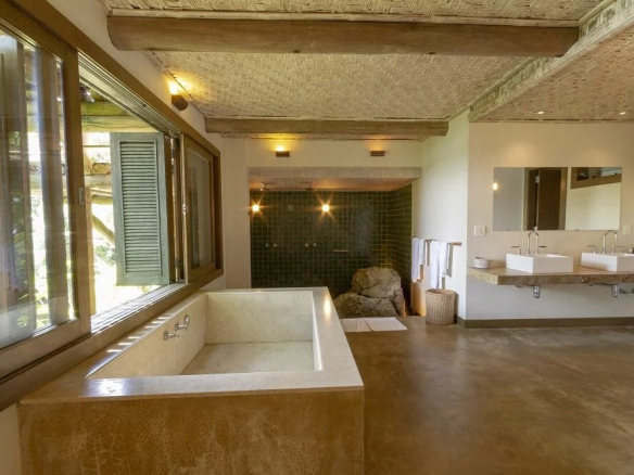 Cette superbe propriété tropicale au Brésil dispose de 6 suites spacieuses et confortables, de 7 salles de bains, d’un grand salon, d’une cuisine avec cellier, d’une buanderie, d’une véranda donnant sur la mer, d’une charmante piscine, d’un sauna et d’un grand espace gazonné avec aménagement paysager.