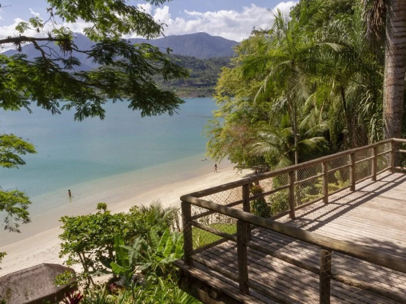 Cette propriété à Paraty-Rio De Janeiro est située dans une copropriété exclusive avec un vaste terrain boisé (33 hectares) au bord de la mer avec seulement 2 autres maisons de plage, également disponibles à la vente en ce moment également présentées dans cette vidéo – Casa Do Jardim et Casa La Praia.