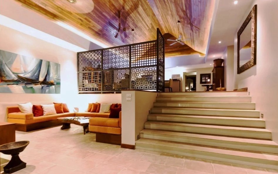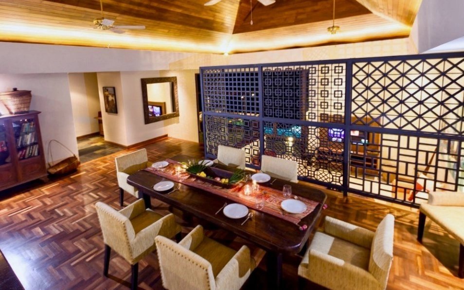 Les intérieurs sont finis avec un mélange de bois classiques et de sols en pierre naturelle, une sélection d’œuvres d’art originales et de meubles anciens de toute l’Asie, donne une atmosphère coloniale très sophistiquée et confortable à la Villa.