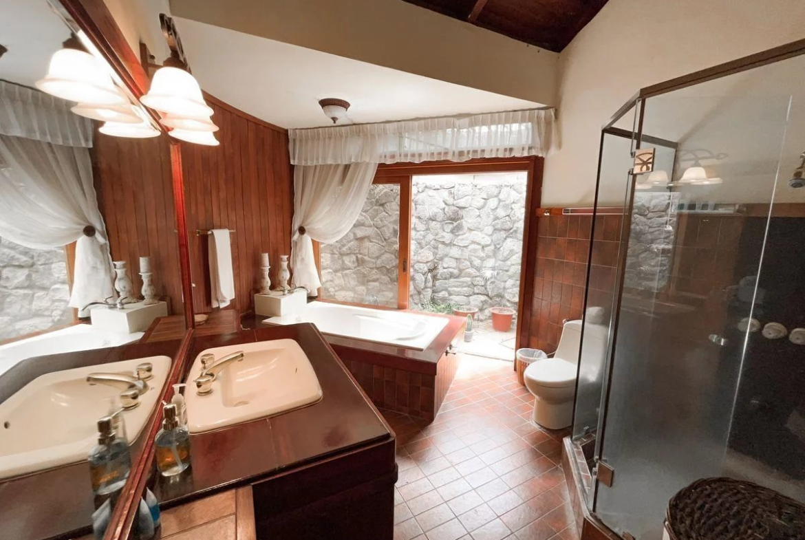 La maison a été conçue par un architecte italien et construite avec des matériaux naturels. Les jardins tropicaux environnants ajoutent de l’intimité et une belle piscine et un bain à remous vous invitent à vous rafraîchir et à vous détendre.