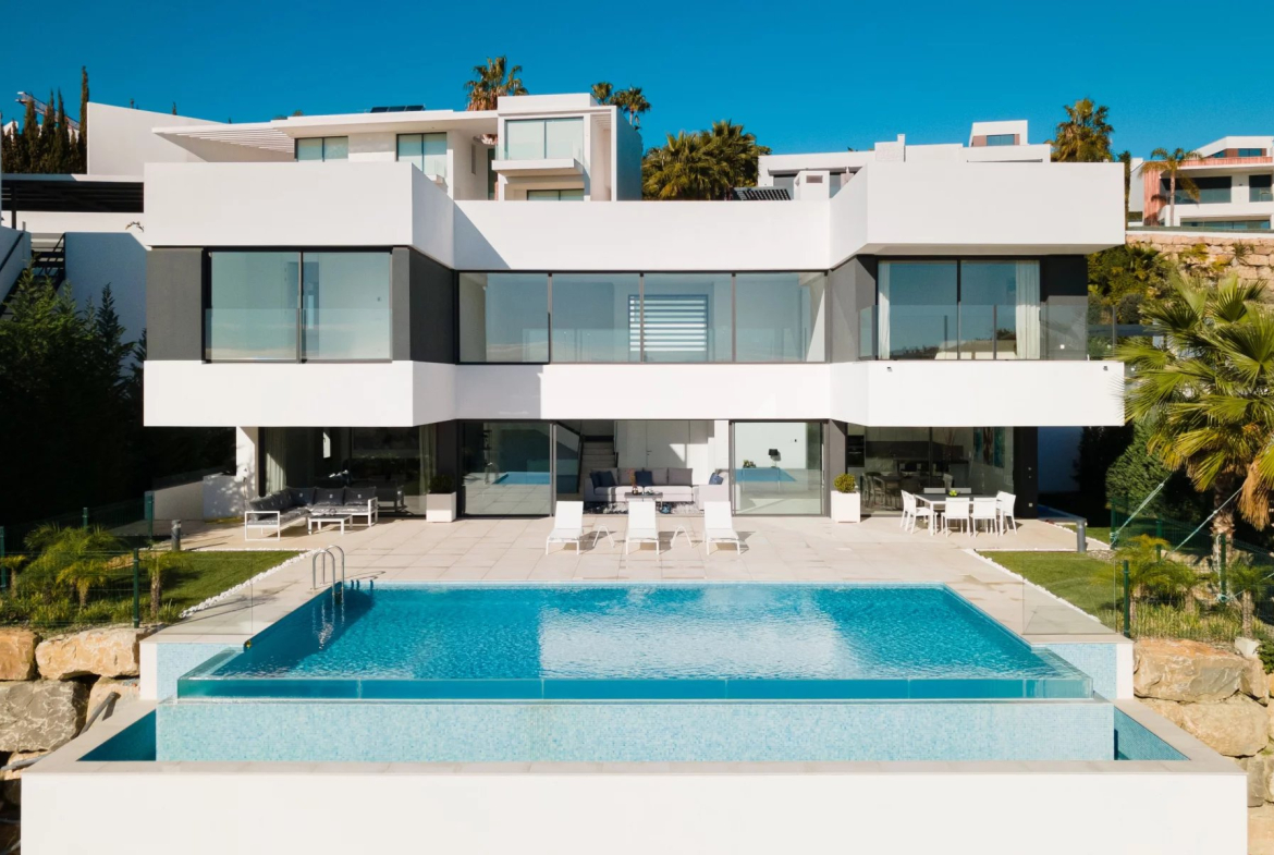 Villa de très haut standing avec un terrain de 1.339 m² a été conçu dans un style contemporain à la mode, utilisant l’art de la symétrie,