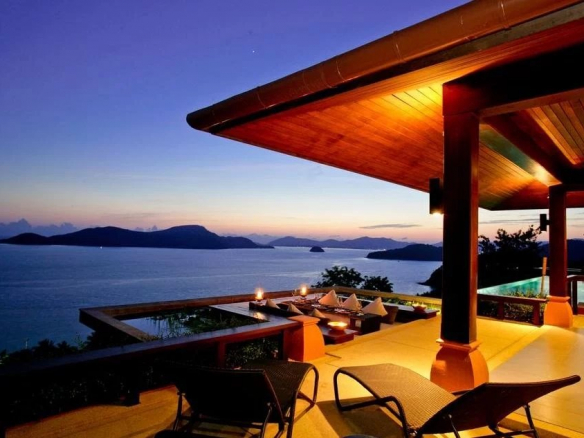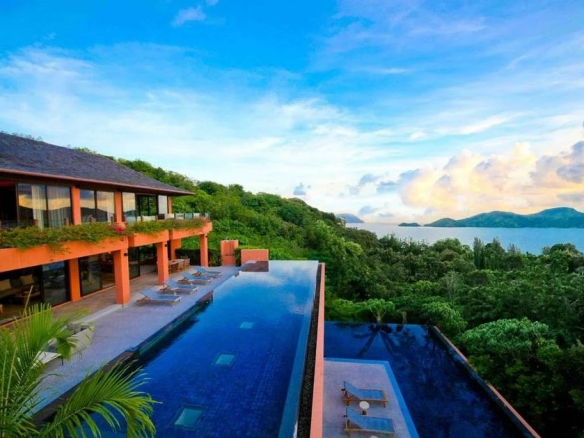 Villa A-5, cinq chambres, située au sommet de la crête avec une vue panoramique sur la mer vraiment spectaculaire. La chambre principale de la villa offre une vue panoramique sur la mer d’Andaman et le cap Panwa. L’entrée de la villa est tout aussi impressionnante, qui offre une piscine à débordement et des vues spectaculaires sur la mer parsemée de plusieurs petites îles à l’horizon.