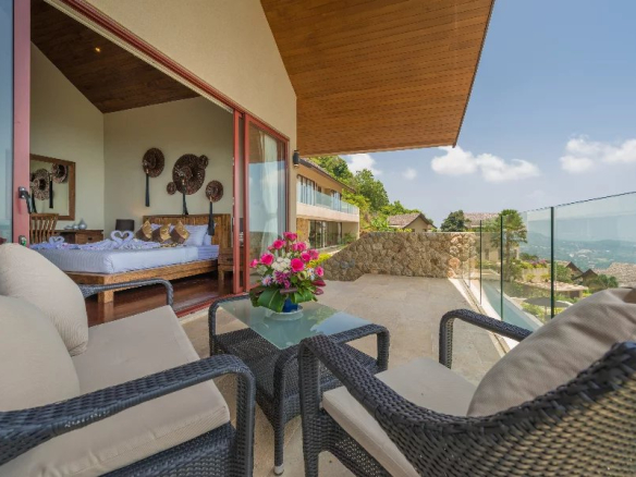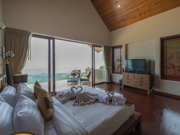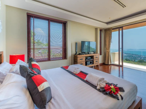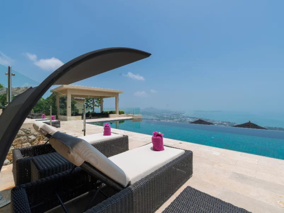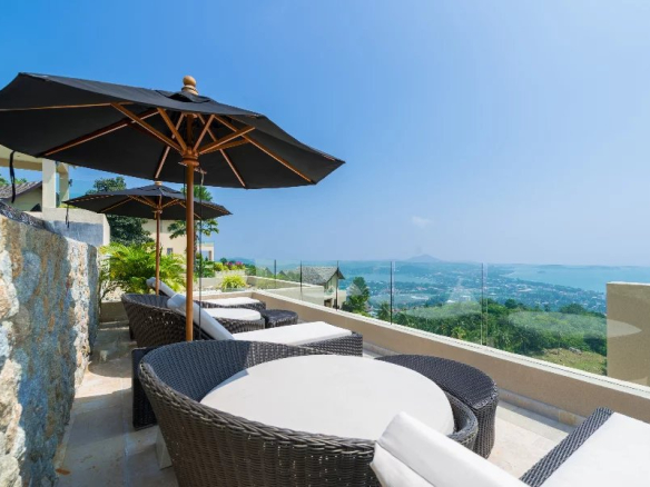 Cette luxueuse villa de 5 chambres offre un niveau de vie inégalé avec une vue panoramique exceptionnelle sur la mer. La villa a été conçue pour créer le style de vie décloisonné idéal tout en maintenant un haut niveau d’intimité. Toutes les 5 chambres sont en suite et ont été équipées de téléviseurs LCD, de lits king size de luxe, de la climatisation, de coffres-forts et d’ornements et d’œuvres d’art thaïlandais chics. Offrant un grand salon/salle à manger, une cuisine entièrement équipée, une grande sala extérieure couverte et des terrasses, des espaces de détente ouverts, une grande piscine à débordement et un bar. Aucune dépense n’a été épargnée dans la conception, la construction et l’ameublement de cette villa. Cette superbe propriété offre des vues incomparables et sans doute le meilleur de son genre sur Koh Samui.