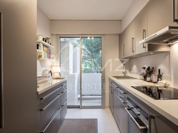 L’appartement se compose d’un grand séjour lumineux, s’ouvrant sur une vaste terrasse offrant une vue panoramique imprenable sur la mer Méditerranée et les célèbres îles de Lérins. La cuisine séparée, entièrement équipée et en excellent état, permet de préparer vos repas dans un cadre fonctionnel et élégant.