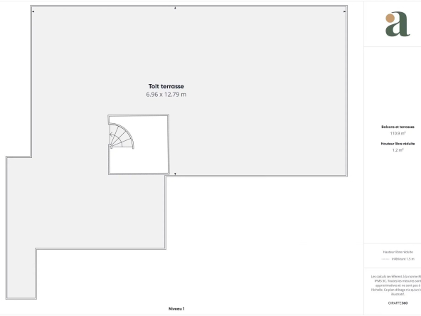 Le toit-terrasse est accessible par un escalier en colimaçon. D’une surface d’environ 100 m², vous bénéficierez non seulement d’une vue à 360 degrés sur la ville et la mer, mais surtout de plusieurs espaces aménagés : solarium, jardin et grand espace repas.