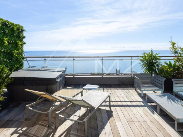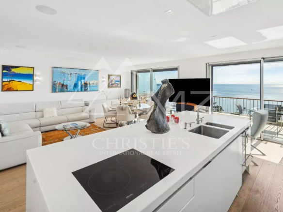 Perché au 10ème et 11ème étage, cet appartement en excellent état se distingue par son salon lumineux et sa cuisine ouverte moderne au design épuré, le tout prolongé par une terrasse offrant une vue mer panoramique à couper le souffle. La première étage comprend une grande chambre ainsi qu’un bureau, pouvant être transformé en chambre supplémentaire si désiré.