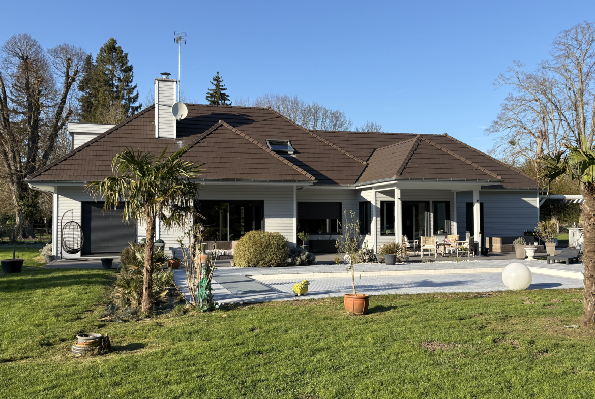 Dans un charmant village de la Vallée d’Eure avec petits commerces et école, cette maison contemporaine à ossature bois très lumineuse et spacieuse offre un cadre de vie ideal pour une famille en quete d’espace et de serénité.