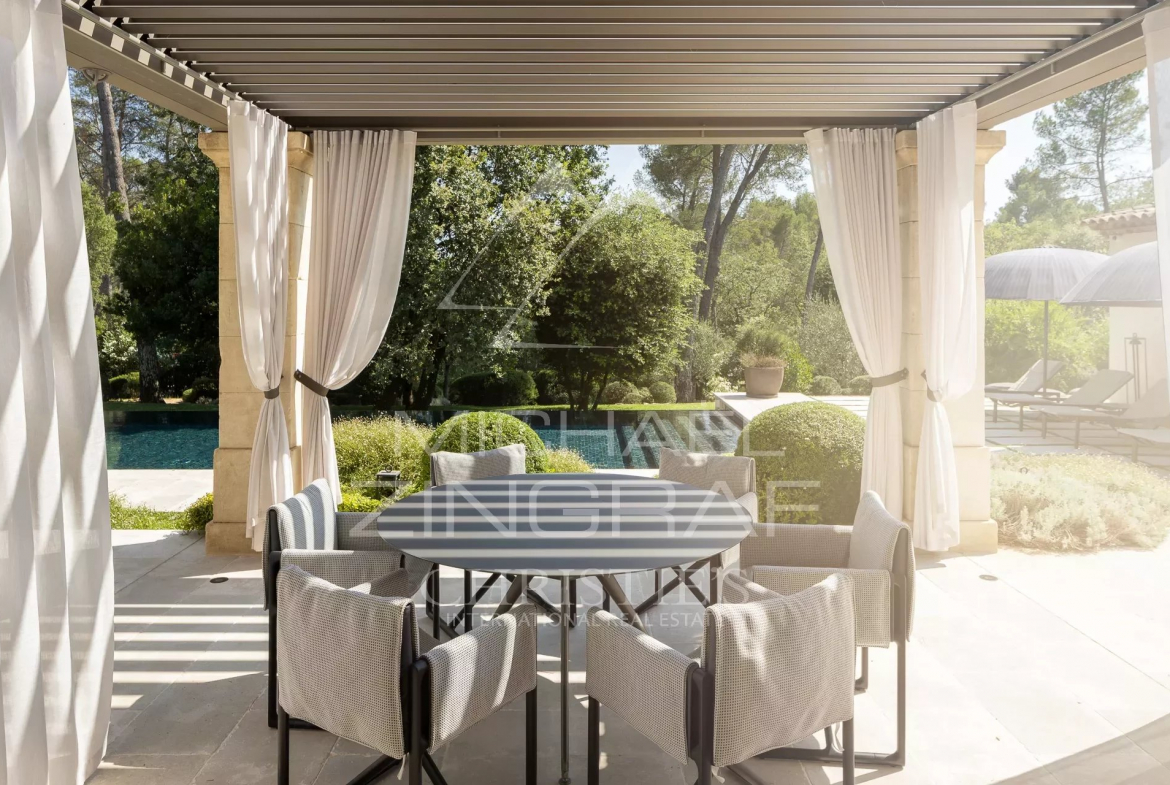 Une piscine chauffée, une salle de jeu extérieure, un coin braséro et une cuisine d’été viennent compléter ce bien d’exception.