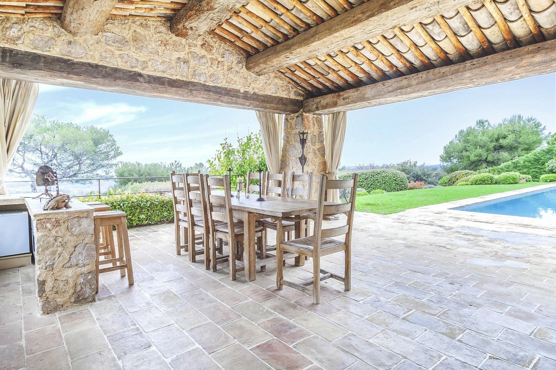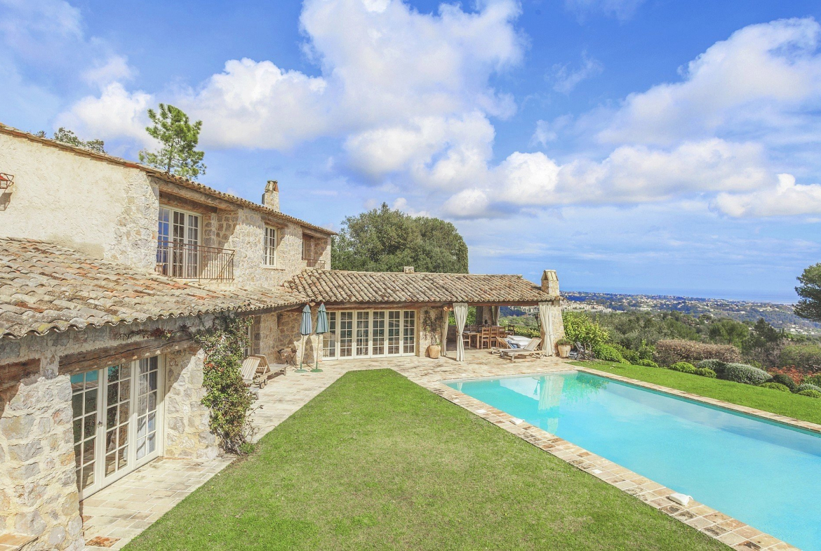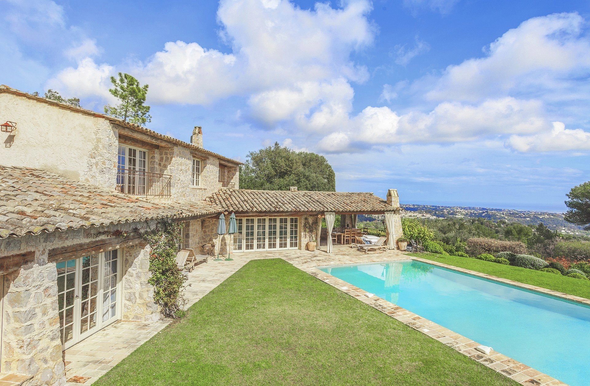 Dans le prestigieux domaine fermé des Hauts de St Paul, superbe propriété en pierres construite par l’architecte Robert Dallas, bénéficiant d’une vue mer panoramique et d’une vue sur le village de Saint Paul de Vence.
