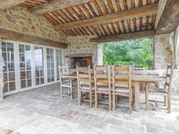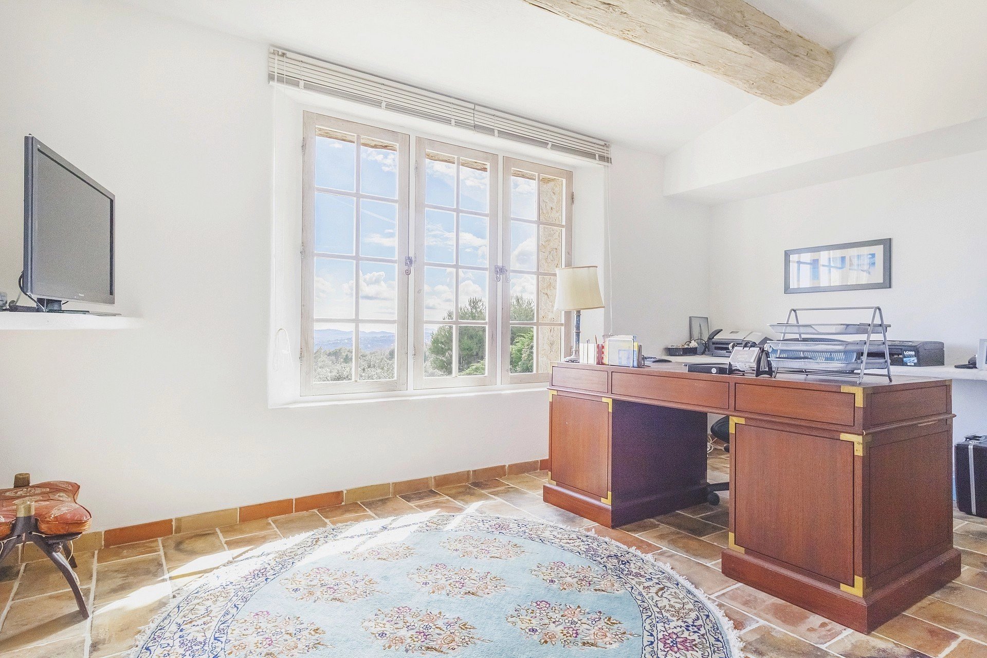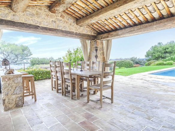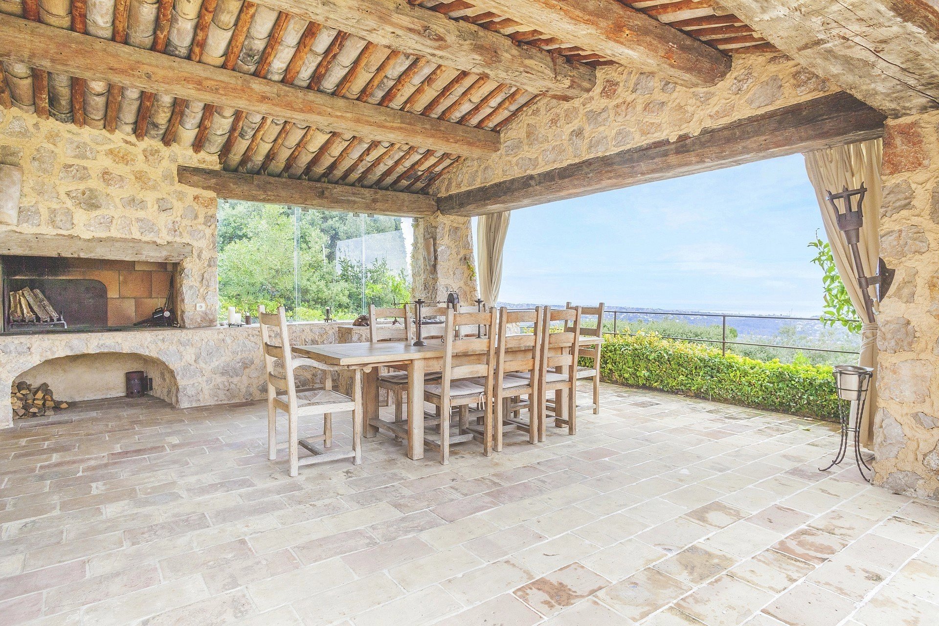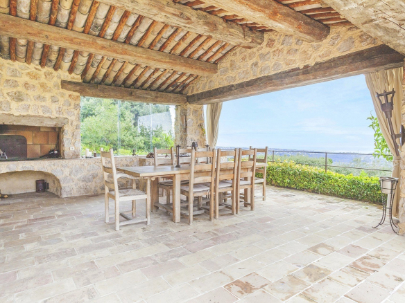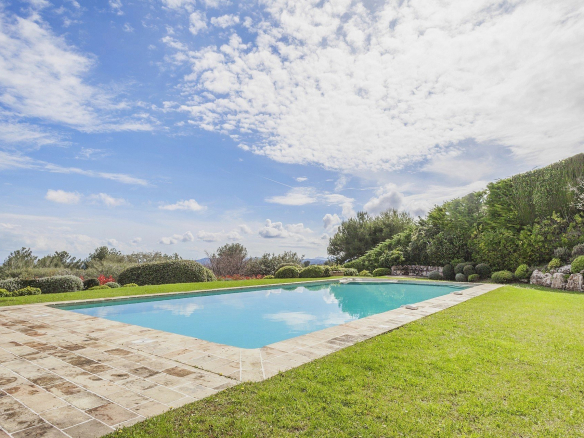 Dans le prestigieux domaine fermé des Hauts de St Paul, superbe propriété en pierres construite par l’architecte Robert Dallas, bénéficiant d’une vue mer panoramique et d’une vue sur le village de Saint Paul de Vence.