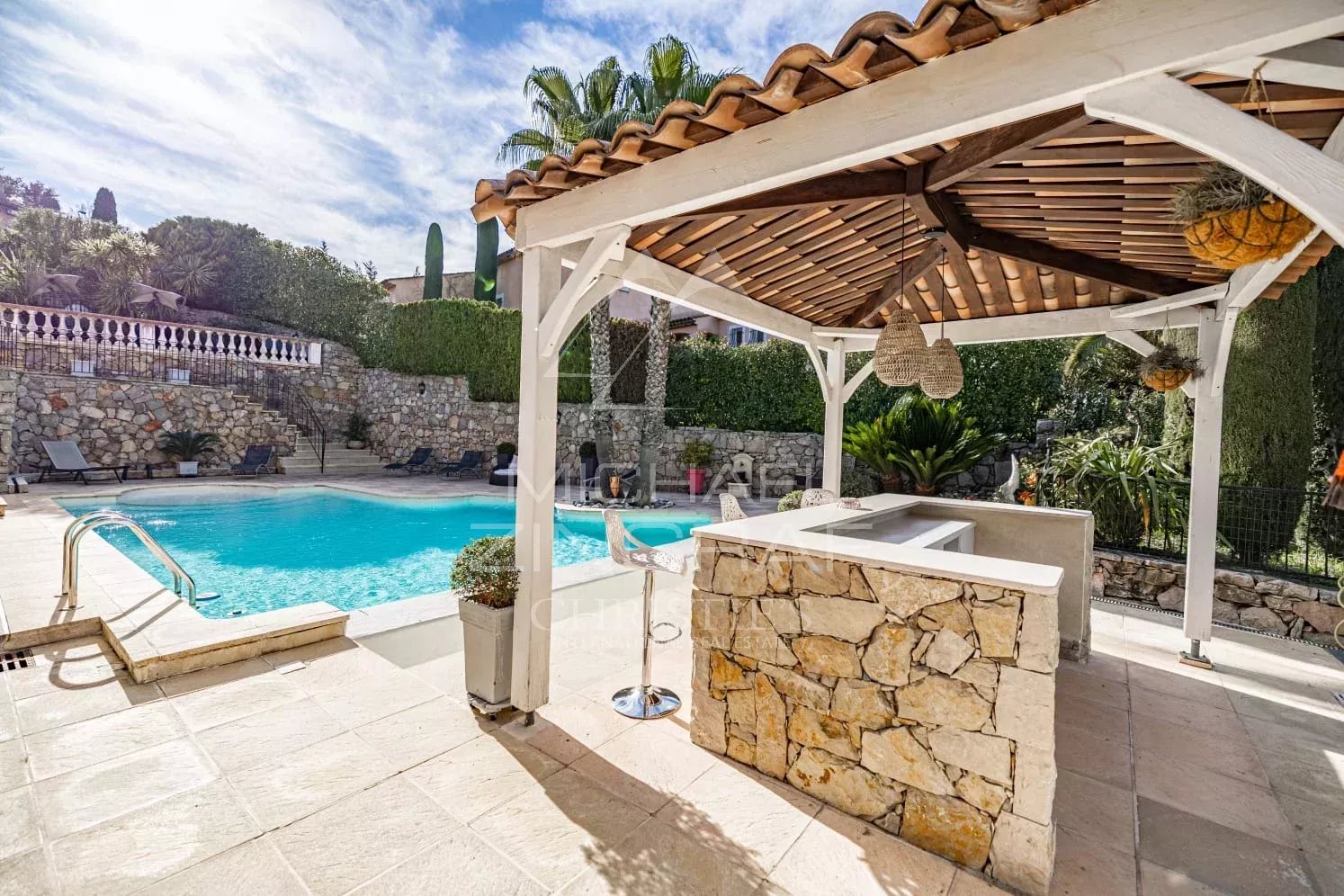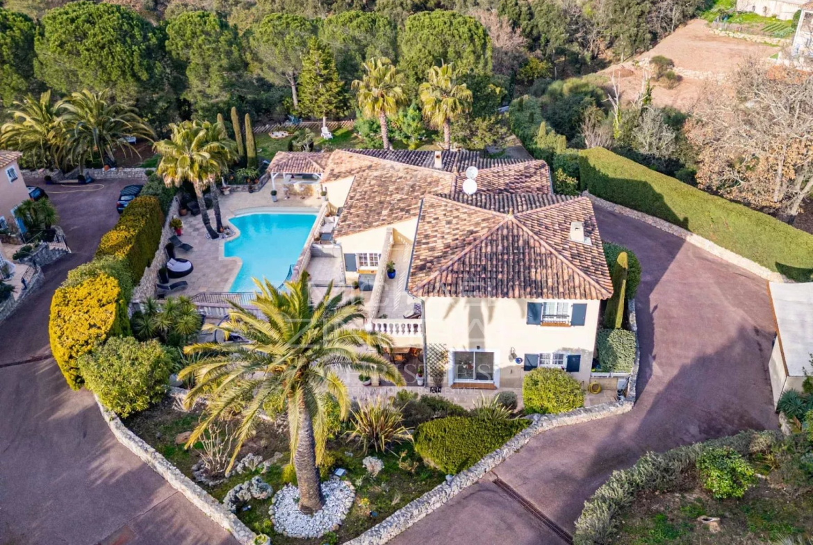 À deux pas du village des Adrets de l’Estérel et de toutes ses commodités, proche également de la sortie d’autoroute, élégante propriété d’environ 205m2.