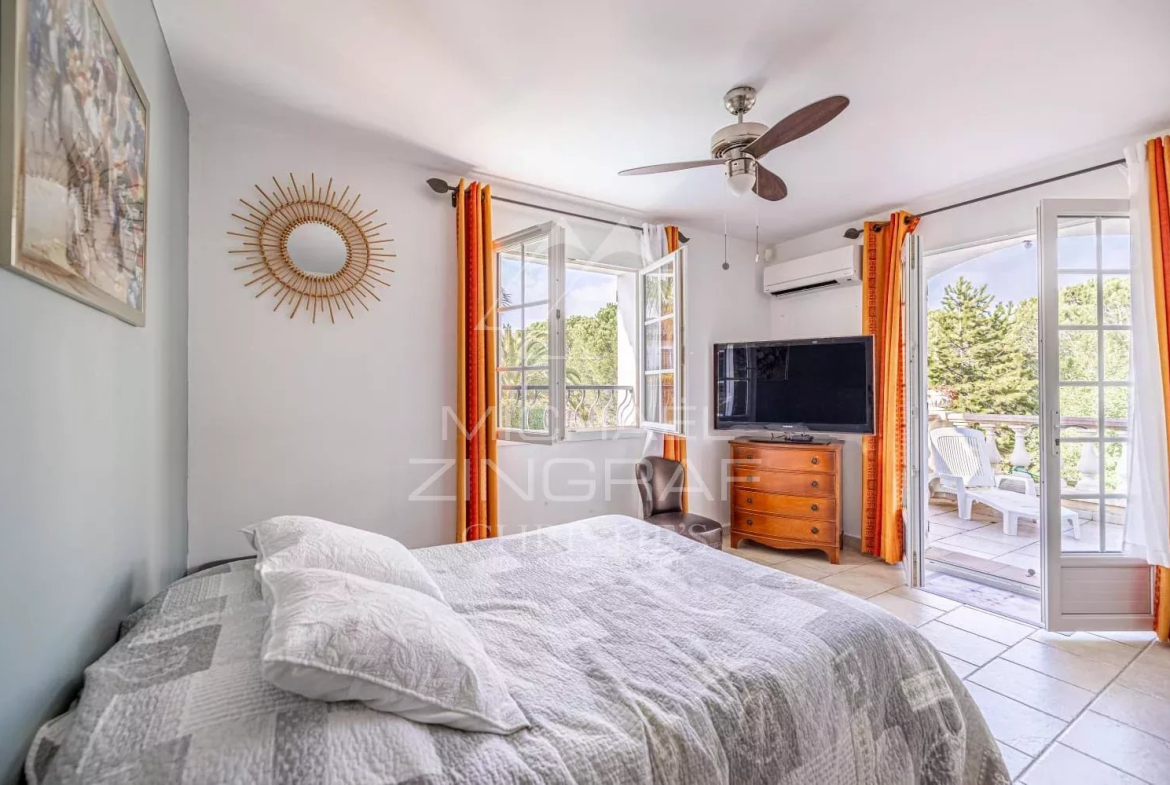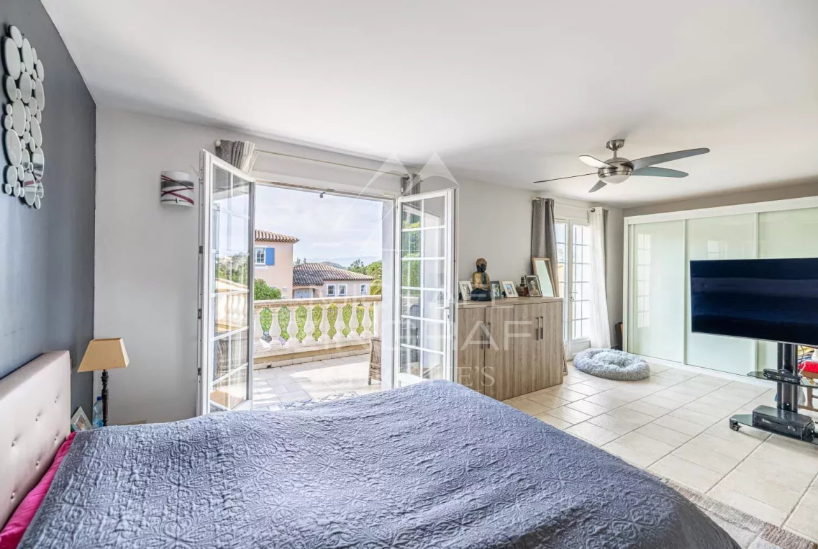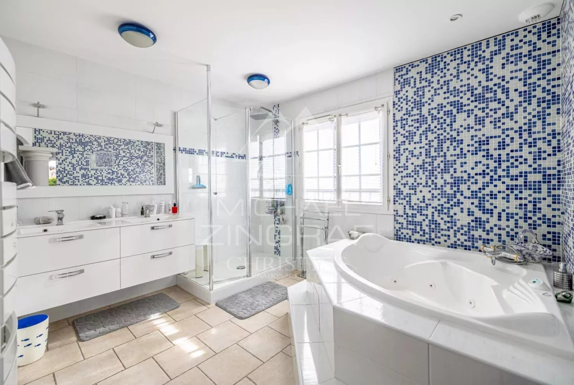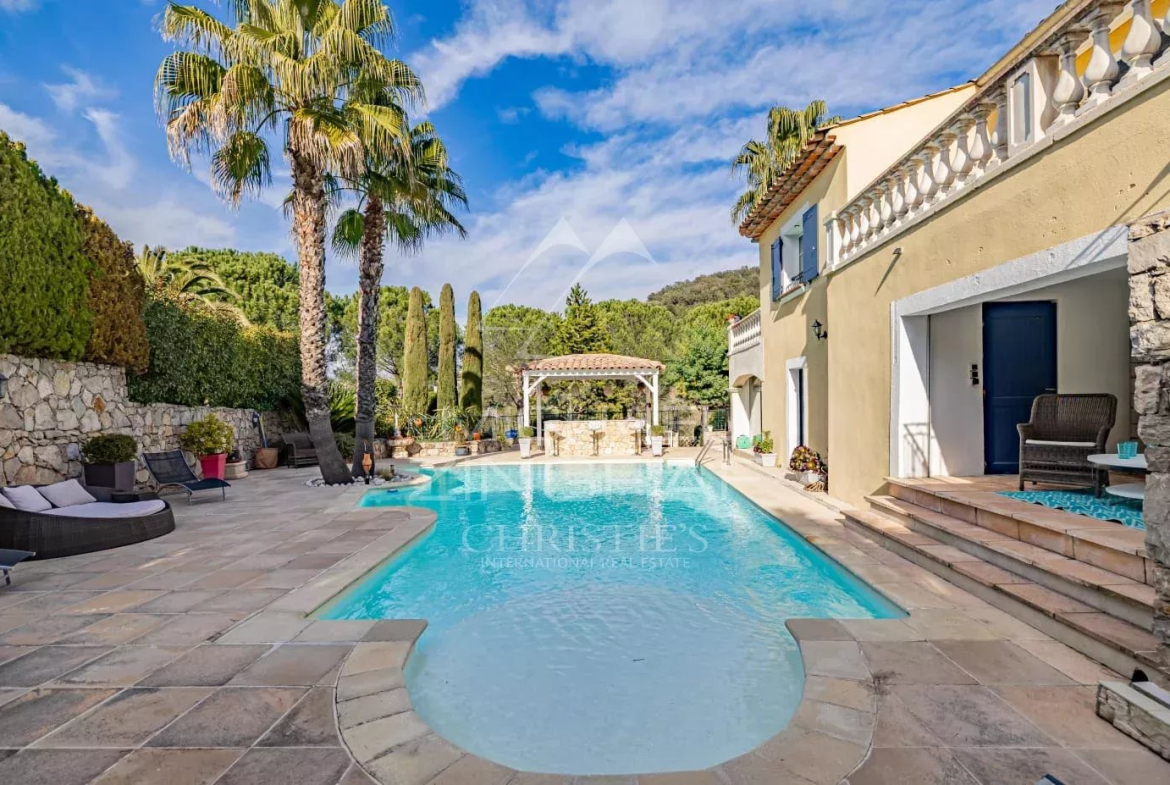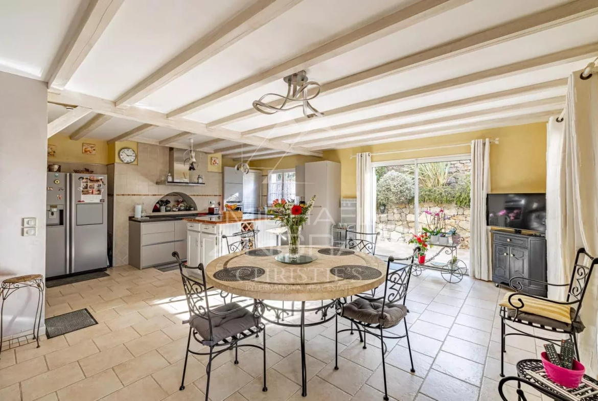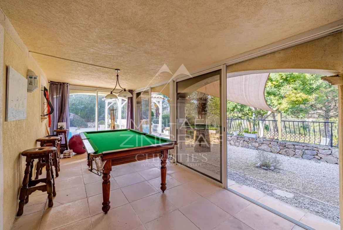 À deux pas du village des Adrets de l’Estérel et de toutes ses commodités, proche également de la sortie d’autoroute, élégante propriété d’environ 205m2.