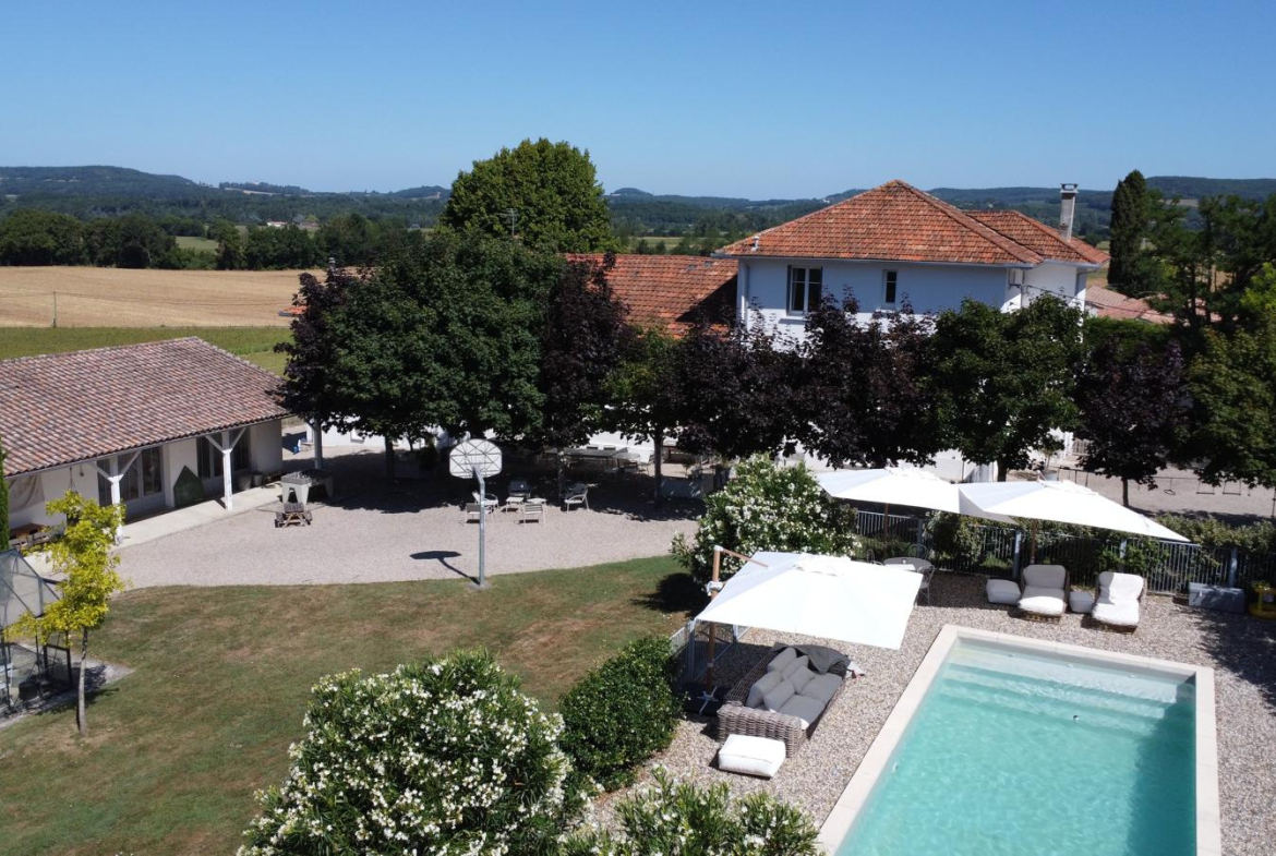 Cette propriété exceptionnelle située dans le Lot-et-Garonne est une ancienne école entièrement rénovée en maison familiale moderne et confortable. Elle conserve son caractère d’origine tout en offrant des prestations haut de gamme : piscine, jardin clos, cour couverte et équipements de loisirs. La maison s’étend sur trois niveaux et propose de vastes espaces de vie lumineux, plusieurs chambres dont une suite parentale, ainsi que des zones pouvant être aménagées en logement indépendant ou chambres d’hôtes. Deux garages, un espace commercial et un grand parking complètent l’ensemble. Un bien rare, proche d’un village dynamique, idéal pour un projet de vie ou d’accueil.