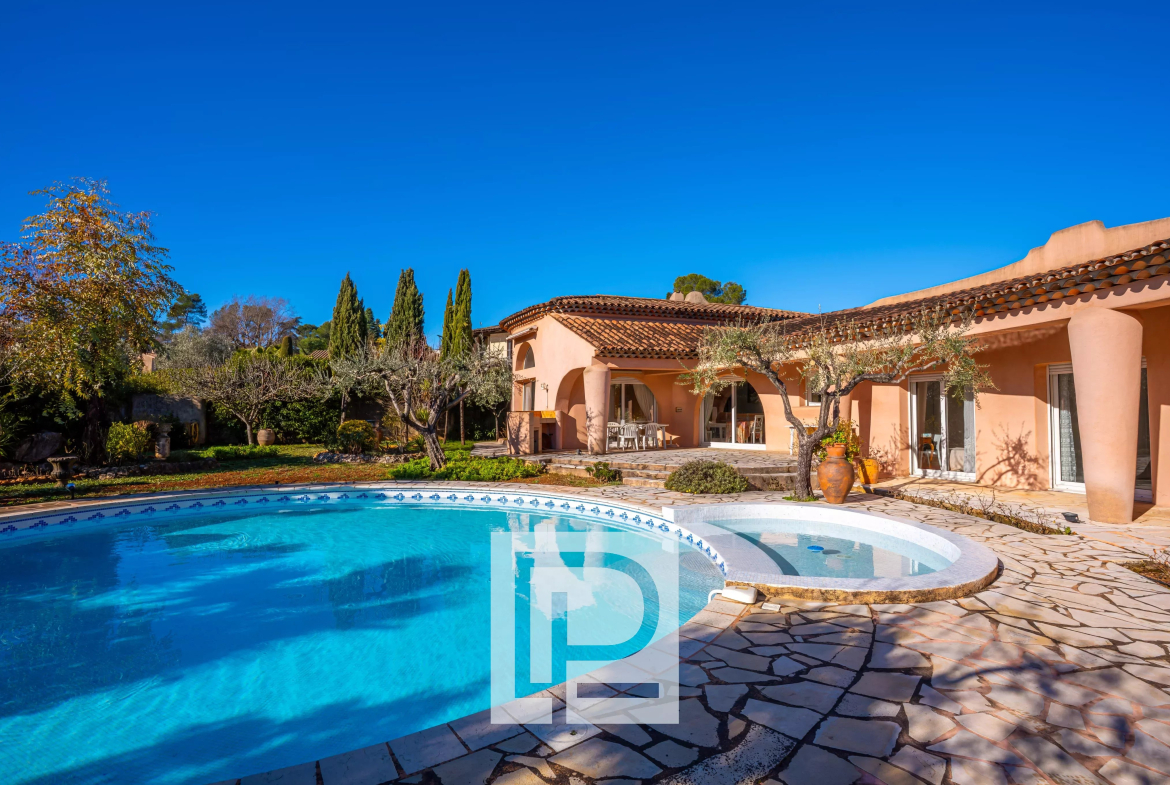 Située à Mougins, en limite de Mouans-Sartoux, venez découvrir cette villa de plain-pied construite en 1998, développant une surface habitable d’environ 195m².