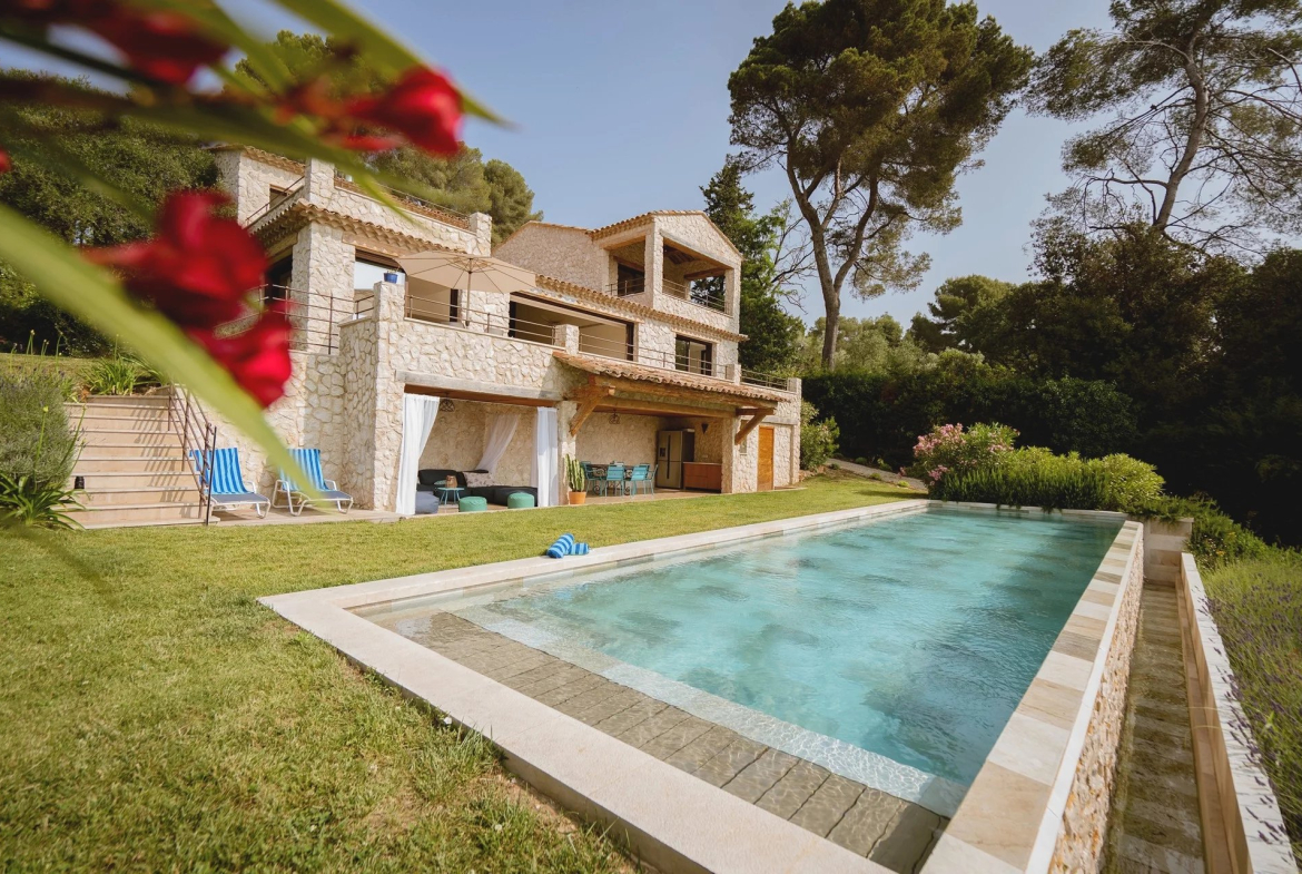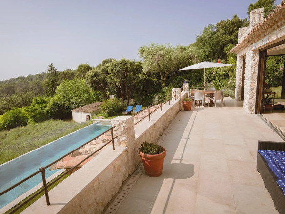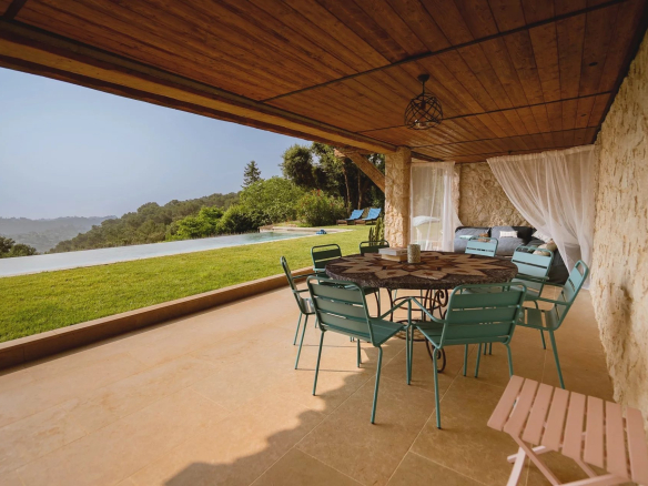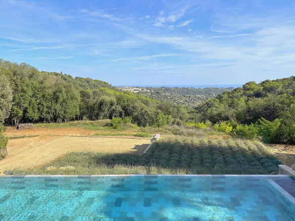 Terrain de plus de 1 hectare avec piscine à débordement, cuisine d’été et pool-house.