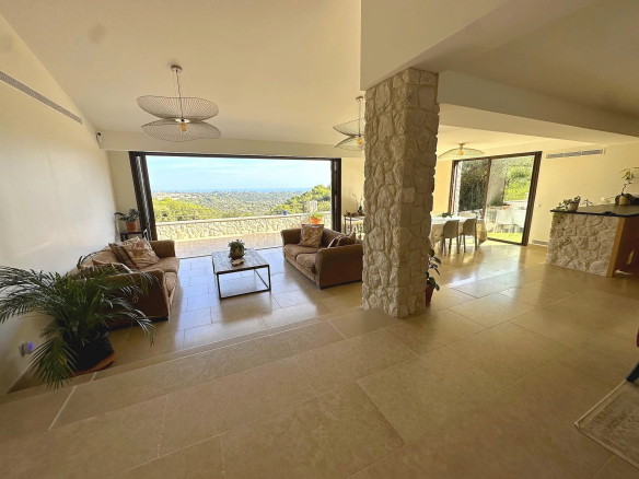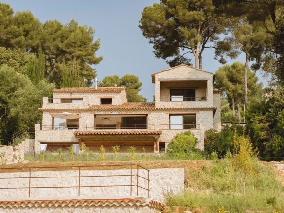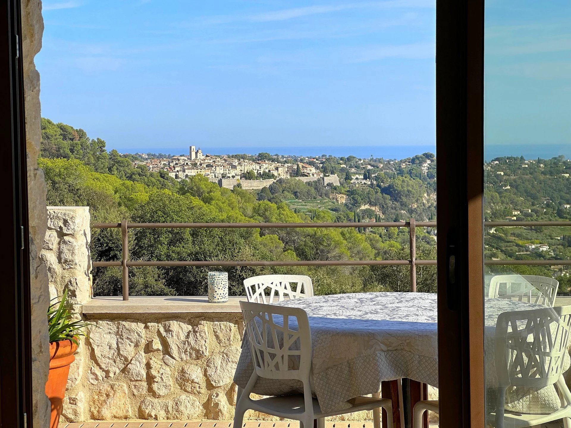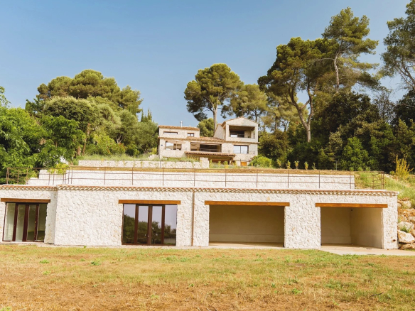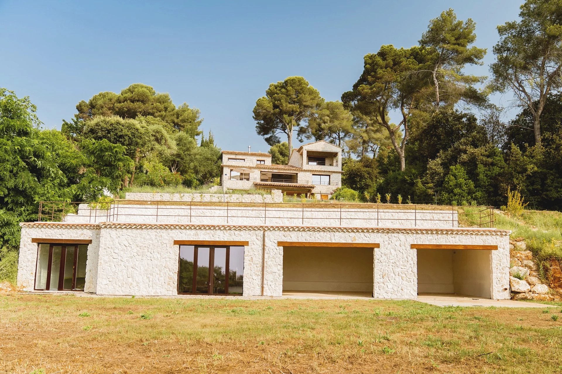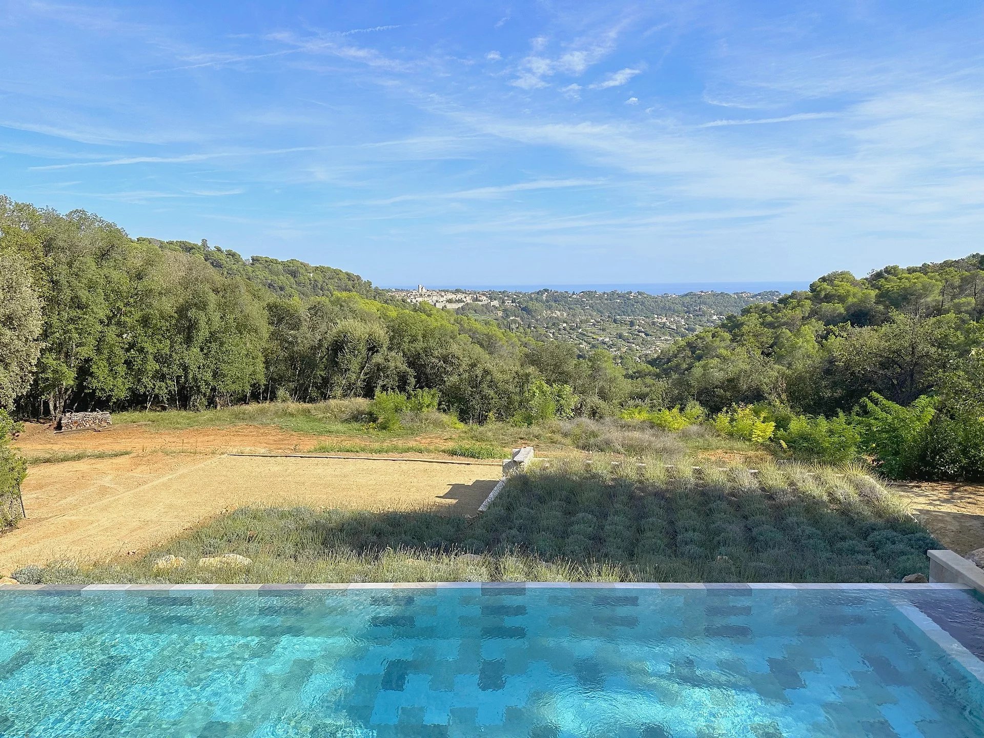 Au sein d’un quartier calme et résidentiel, en position dominante, superbe propriété en pierres, achevée en 2022 et bénéficiant d’une vue panoramique imprenable sur la mer et le village de Saint Paul de Vence.