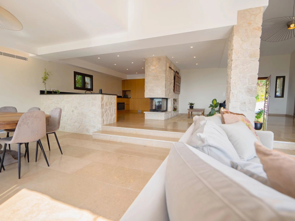 Elle se compose d’un bel espace de vie avec salon, salle à manger ouvrant par des baies à galandage sur une grande terrasse, une cuisine entièrement équipée, 4 chambres, 3 salles de bains/ douches et en bonus un hammam pour la chambre de maîtres.