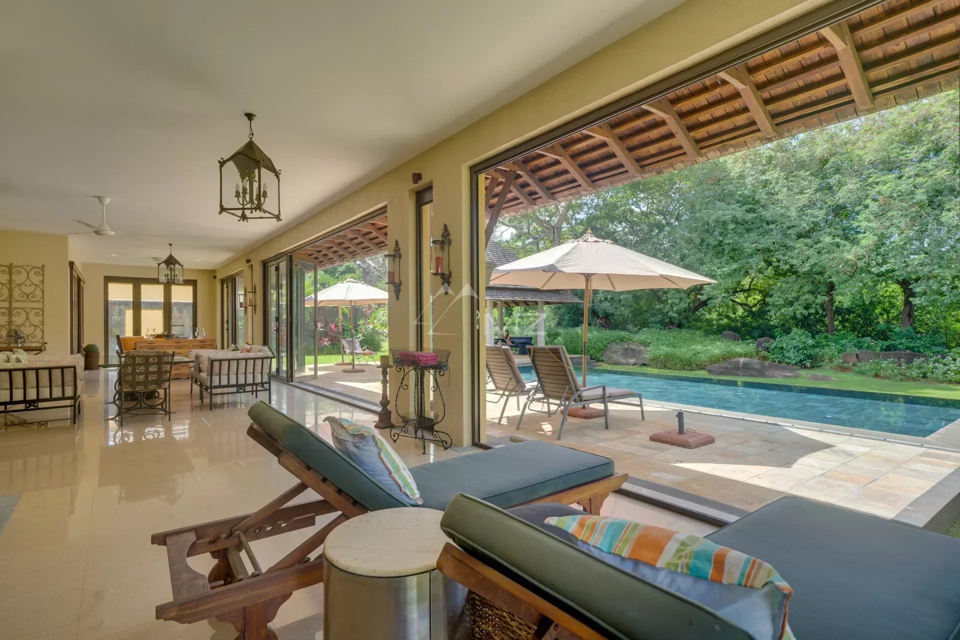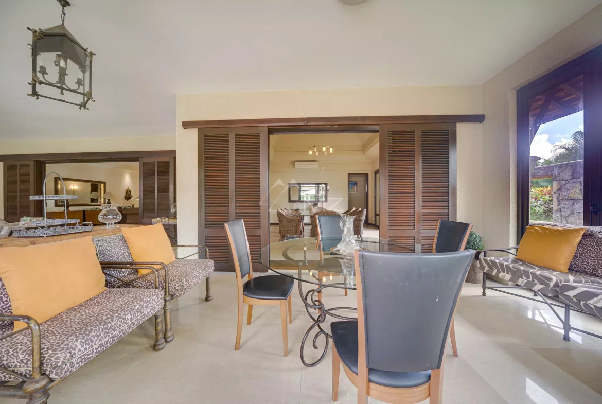 Une vaste véranda couverte, parfaite pour recevoir et profiter de la douceur mauricienne,