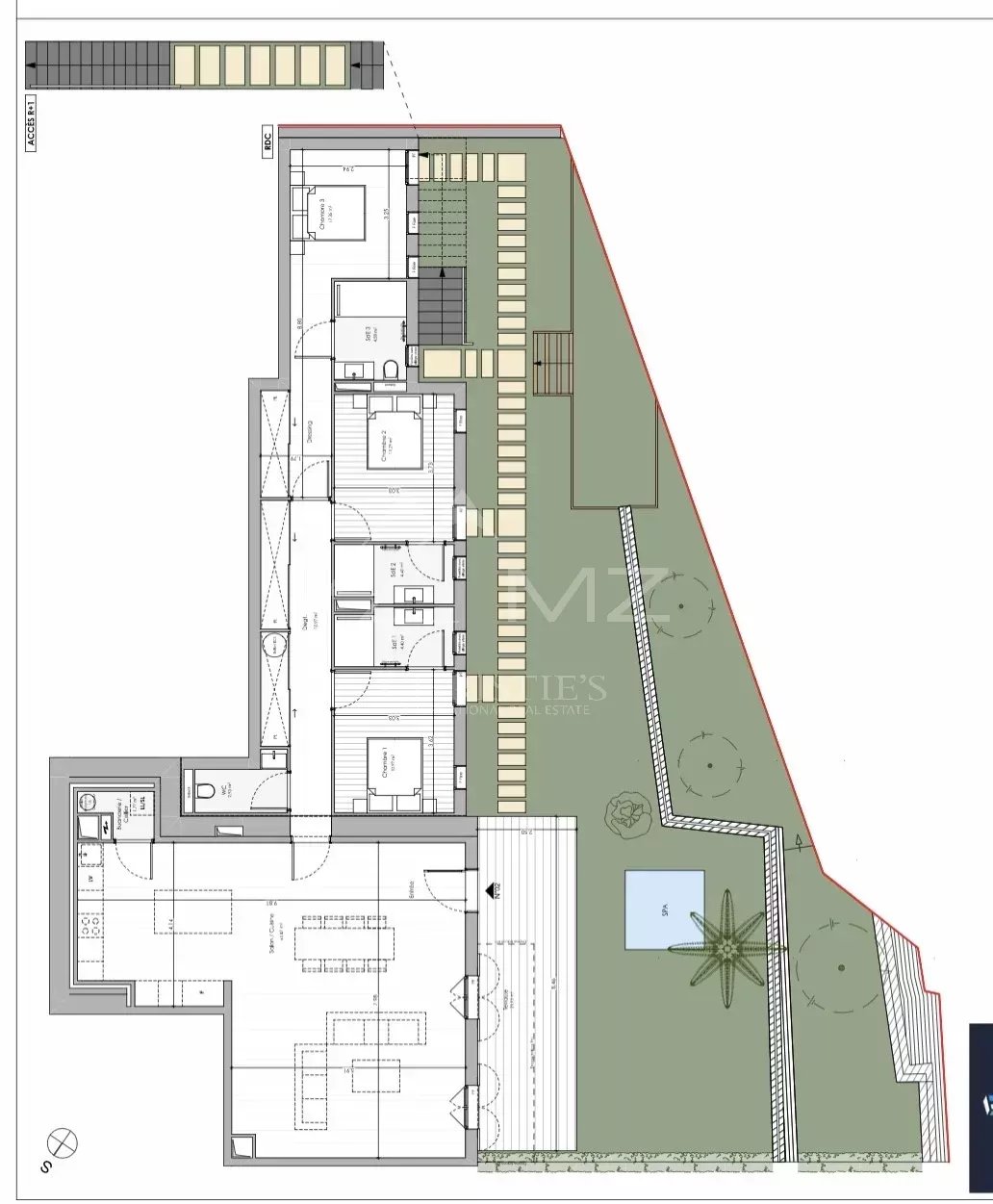 Cet appartement propose une pièce de vie spacieuse de plus de 60m² avec une cuisine ouverte, ainsi que trois chambres disposant chacune de leur propre salle d’eau. Un accès à un jardin privé d’environ 200m2 depuis toutes les pièces, complété par un jaccuzzi, viennet parfaire les prestations luxueuses de cette construction, pour profiter pleinement des longues journées d’été face à la mer.
