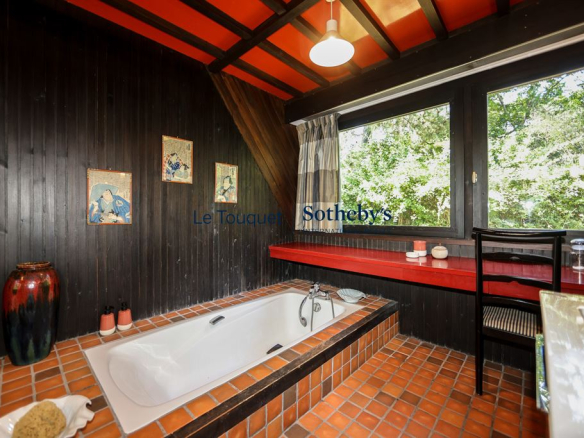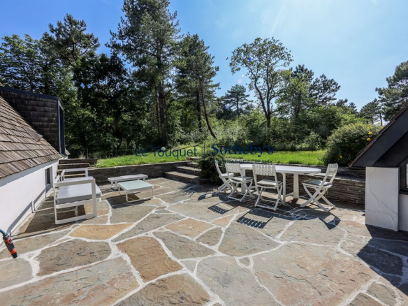 Idéalement située à quelques pas du prestigieux Golf du Touquet, cette propriété rare profite d’un emplacement privilégié, au cœur d’un environnement verdoyant et préservé. Nichée dans un écrin de nature entre pins maritimes et pelouse soignée, elle offre un cadre de vie paisible où le murmure du vent dans les arbres remplace l’agitation du centre, pourtant accessible en quelques minutes à vélo par les pistes cyclables.