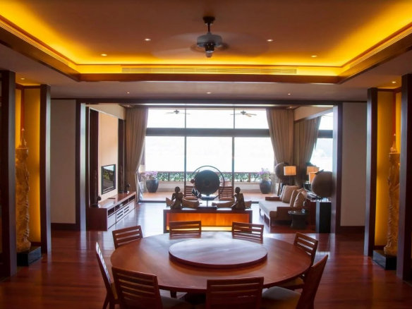 Les propriétés de 4 chambres sont rares à Phuket. Cependant, nous en avons un pour vous, et il est livré avec une immense terrasse et une vue imprenable sur la mer. Non, je n’exagère pas. Imaginez si vous voulez, un appartement de luxe avec plus de 431 m² de surface couverte. D’immenses plafonds, de beaux parquets et colonnades en bois dur, des panneaux muraux en soie Jim Thompson, des artefacts thaïlandais, vous avez l’idée, j’en suis sûr.