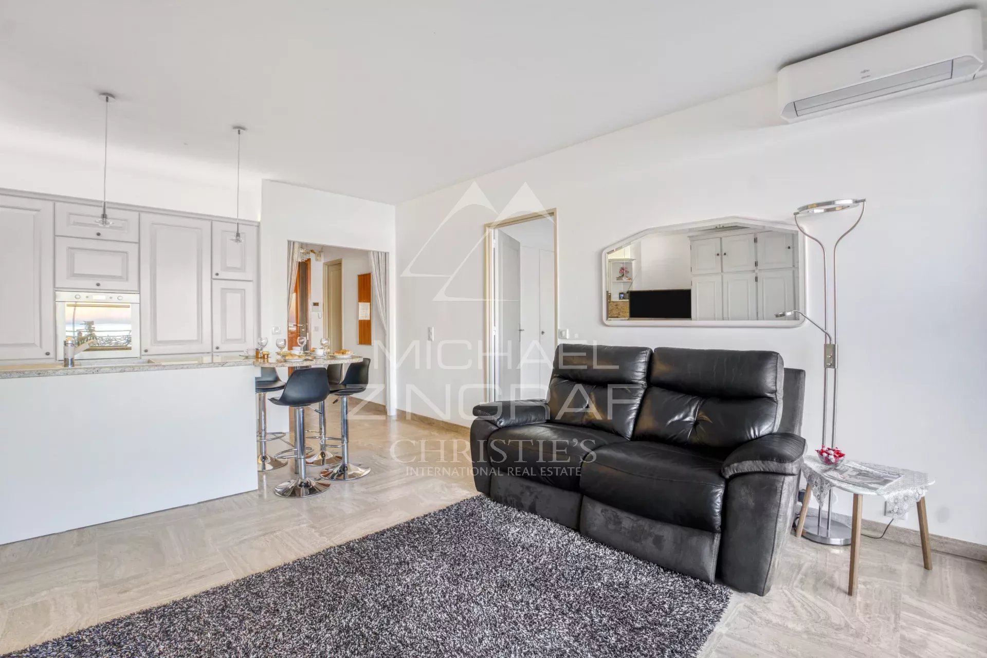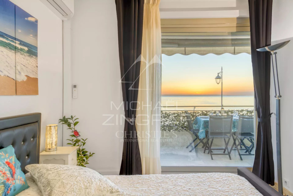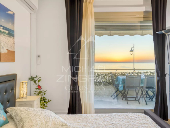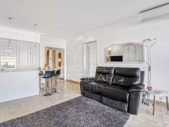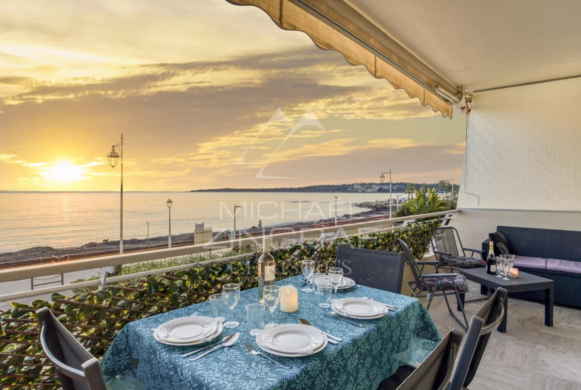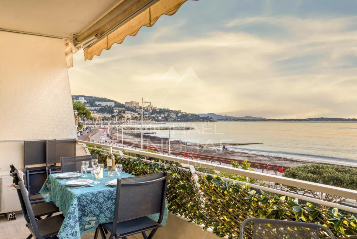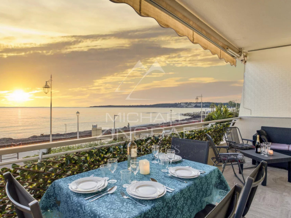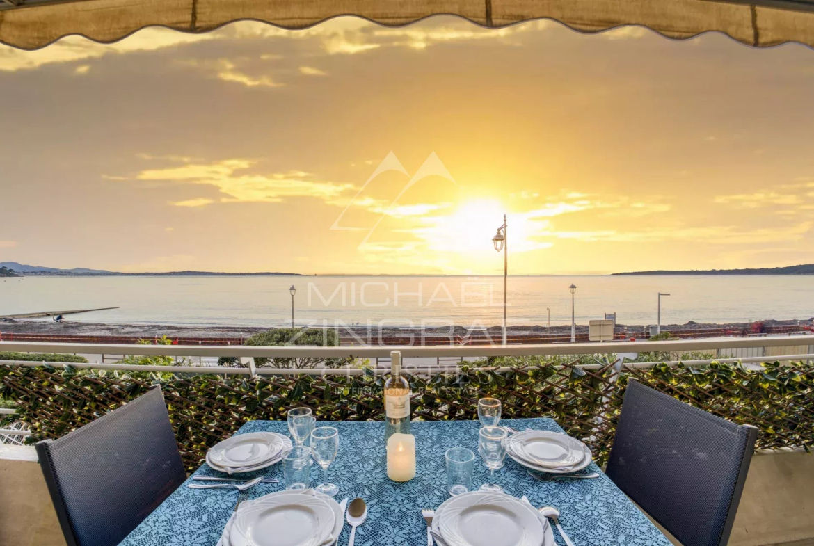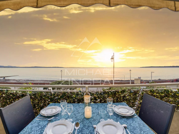 Exclusivité : Idéalement situé face à la plage avec accès direct à la mer, à proximité immédiate de la place de l’Etang avec ses terrains de pétanque, ses commerces et restaurants. Cet appartement en parfait état de 53m² offre une vue spectaculaire de la pointe du Cap d’Antibes jusqu’aux îles de Lérins. L’appartement se compose d’une entrée menant à un séjour/cuisine lumineux qui s’ouvre sur une vaste terrasse de 12 m², idéale pour profiter du climat méditerranéen et du magnifique panorama. La chambre, avec sa vue sur la mer, donne également accès à la terrasse. L’appartement est entièrement climatisé, il est complété d’une salle de bain, un grand espace de rangement et des toilettes invités. Opportunité rare à ne pas manquer.