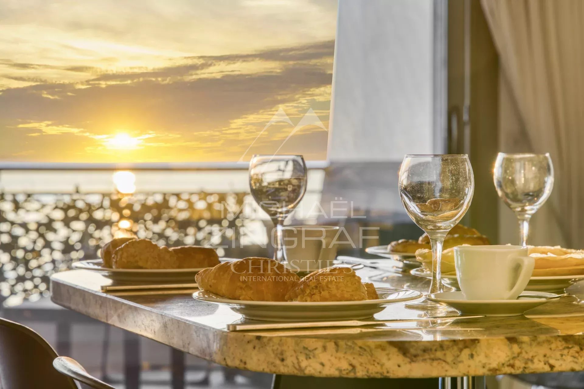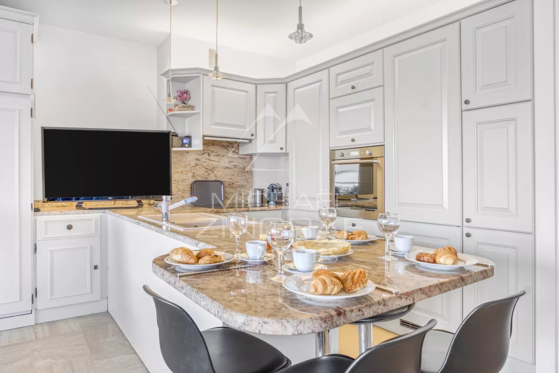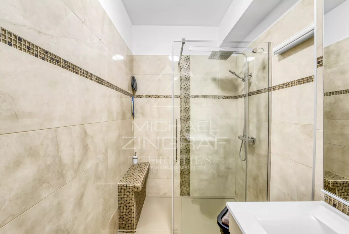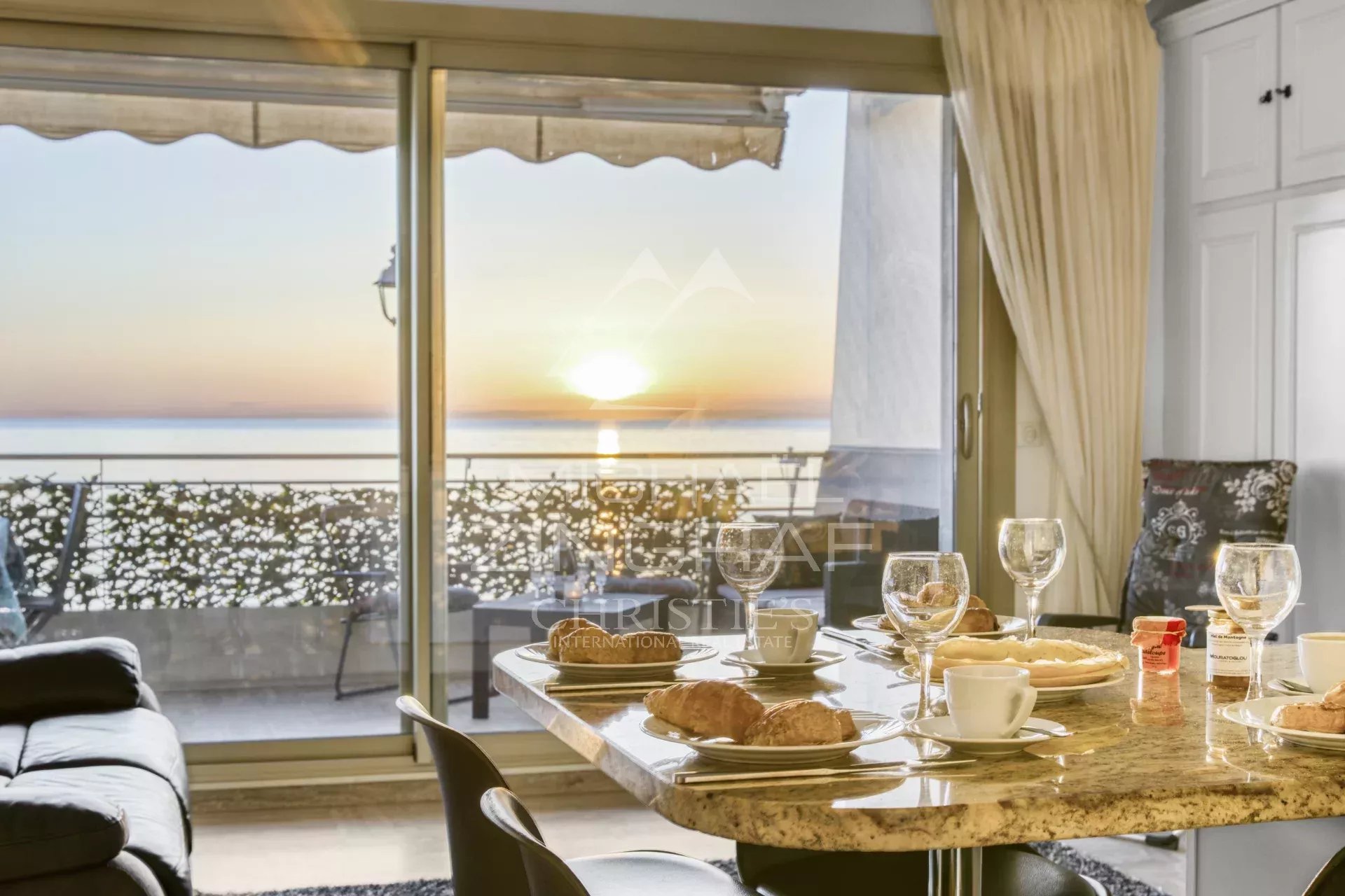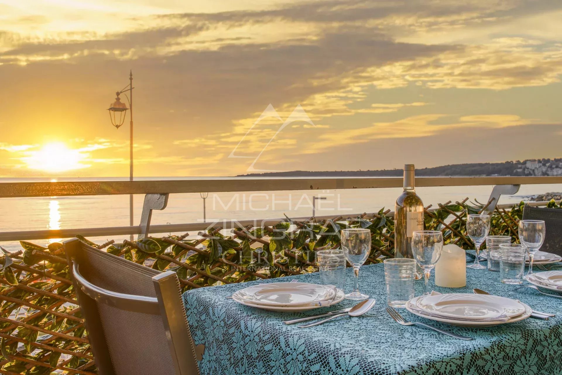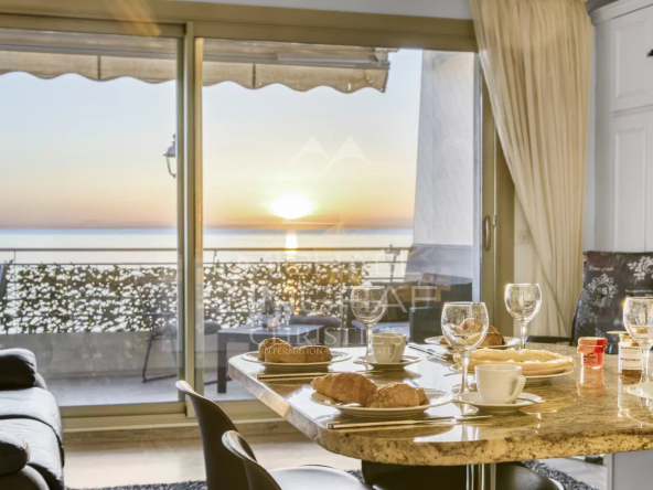 Exclusivité : Idéalement situé face à la plage avec accès direct à la mer, à proximité immédiate de la place de l’Etang avec ses terrains de pétanque, ses commerces et restaurants. Cet appartement en parfait état de 53m² offre une vue spectaculaire de la pointe du Cap d’Antibes jusqu’aux îles de Lérins. L’appartement se compose d’une entrée menant à un séjour/cuisine lumineux qui s’ouvre sur une vaste terrasse de 12 m², idéale pour profiter du climat méditerranéen et du magnifique panorama. La chambre, avec sa vue sur la mer, donne également accès à la terrasse. L’appartement est entièrement climatisé, il est complété d’une salle de bain, un grand espace de rangement et des toilettes invités. Opportunité rare à ne pas manquer.
