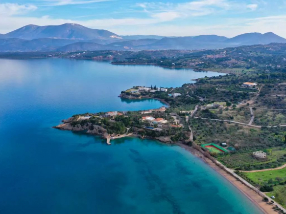Située dans un quartier privilégié du front de mer à 15′ de Porto Heli, la villa est