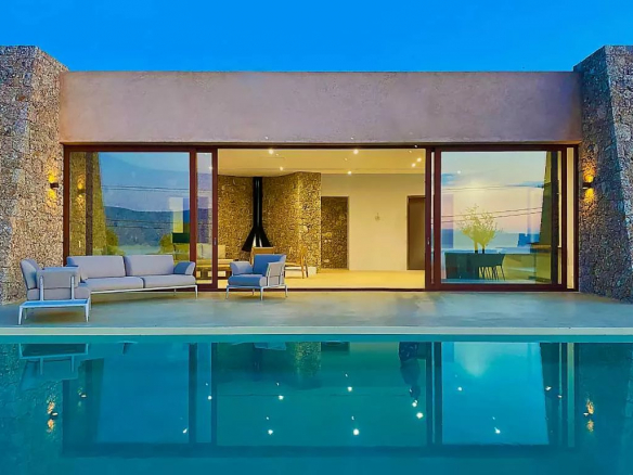 matériaux, offre de superbes vues sur la mer de tous les espaces, une piscine spacieuse et ses environs