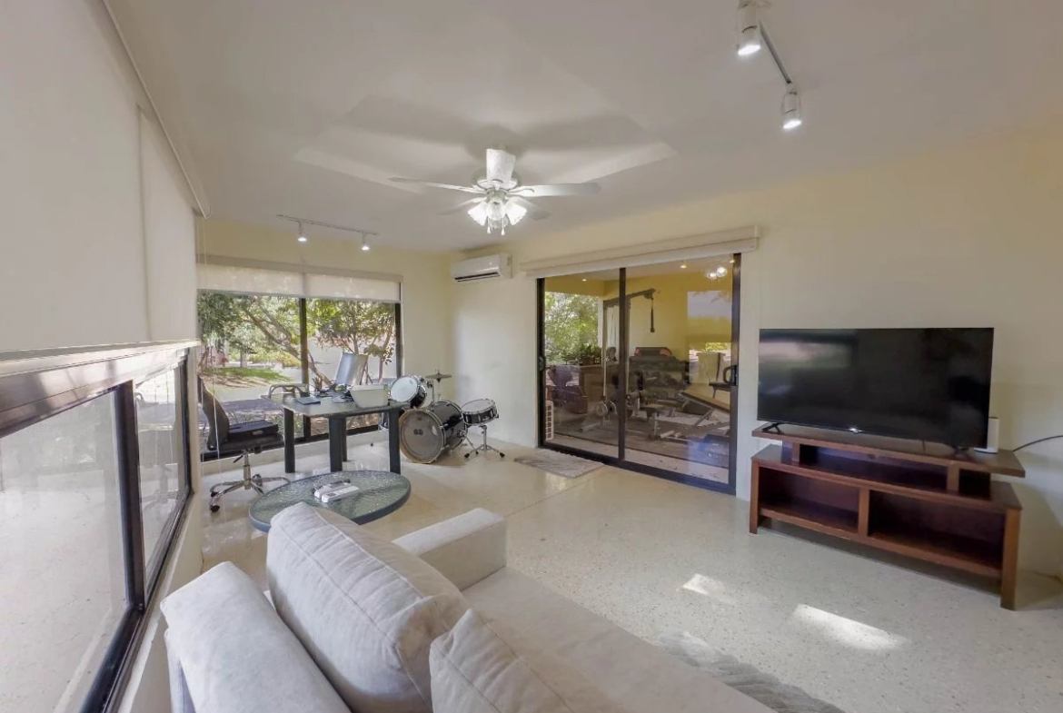 Détendez-vous dans la salle de télévision confortable avec un écran de 80 pouces pour profiter de vos films et émissions préférés.