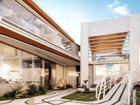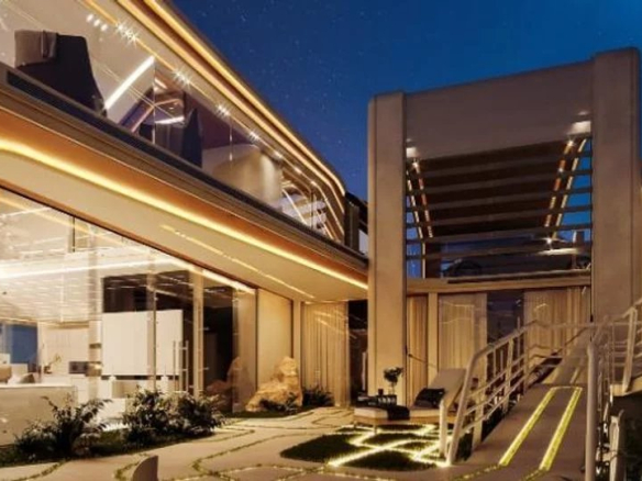 The villa Type: 03 comprises of 5 bedrooms, 7 bathrooms and with the signature unique integration of glass and stainless steel and a sleek space-age contemporary architectural design, with an expansive 1,518 sq.m of built area size and a large 945 sq.m land plot with Chanote title.