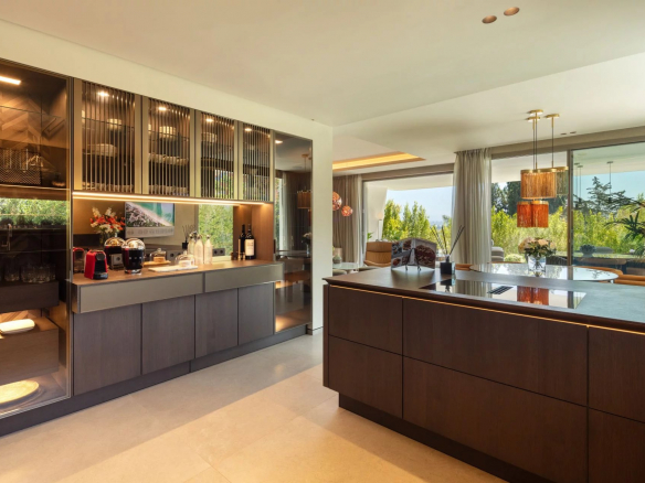 La cuisine ultramoderne est entièrement équipée des derniers appareils électroménagers et le chauffage au sol ajoute une touche de confort.
