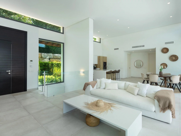 La propriété offre une gamme de terrasses extérieures, parfaites pour les repas en plein air, les barbecues et les espaces de détente détendus, permettant aux résidents de profiter du climat agréable de Marbella tout au long de l’année. Entourée d’une verdure luxuriante, la villa garantit la plus grande intimité par rapport aux propriétés voisines. La forme distinctive de la piscine, reliée à un jacuzzi, ajoute un attrait visuel.