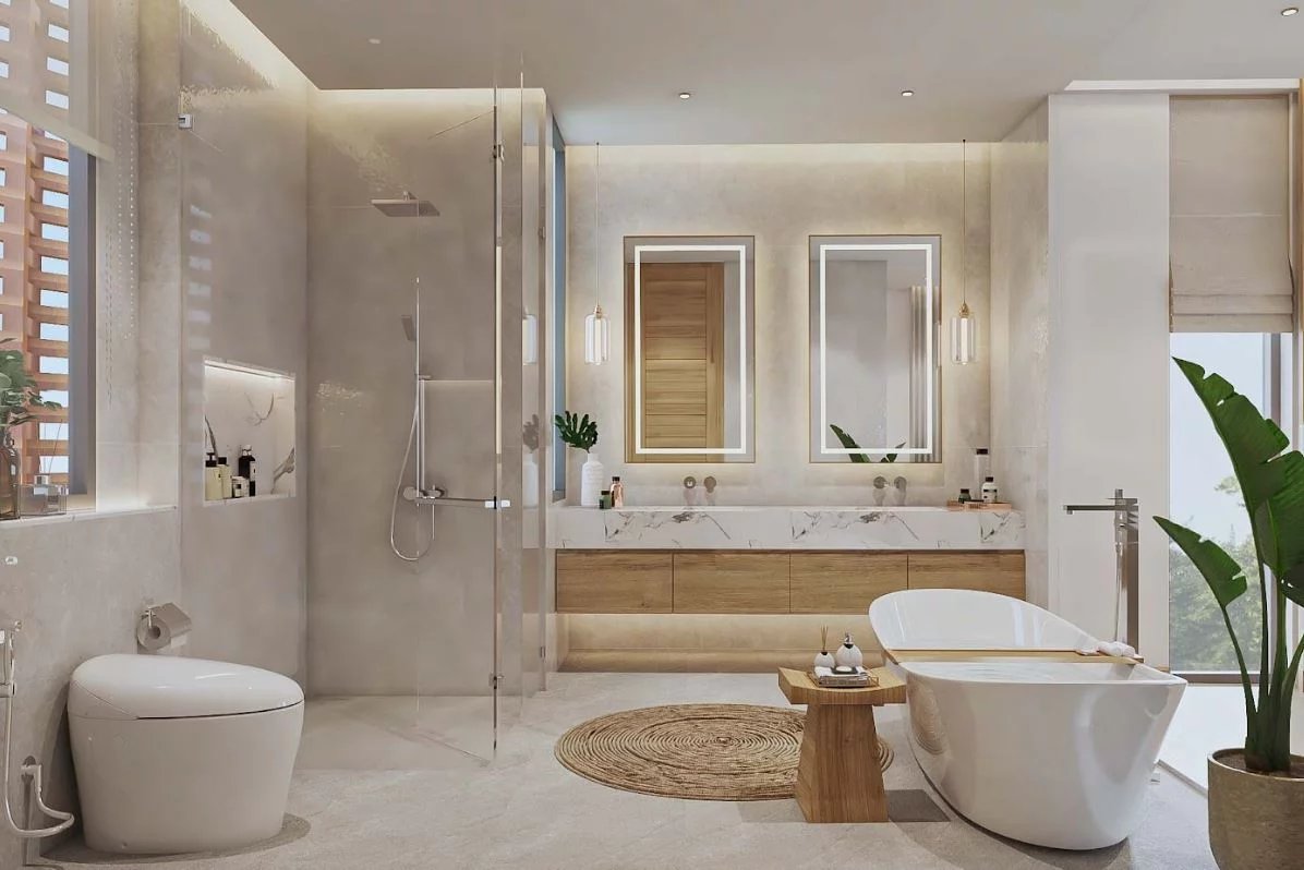 Matériaux durables : Les villas sont construites en bois de teck, symbolisant l’engagement du promoteur à utiliser des matériaux durables et élégants qui se fondent dans l’environnement naturel.