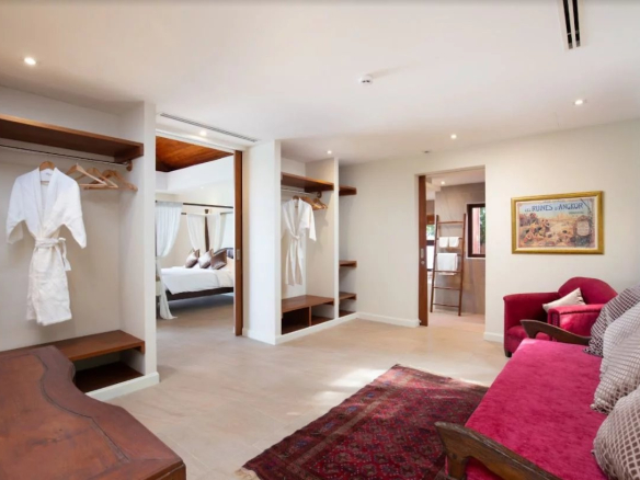 Intérieur avec des œuvres d’art originales et des meubles anciens de toute l’Asie. Tout cela donne à la villa une atmosphère très raffinée et cosy.