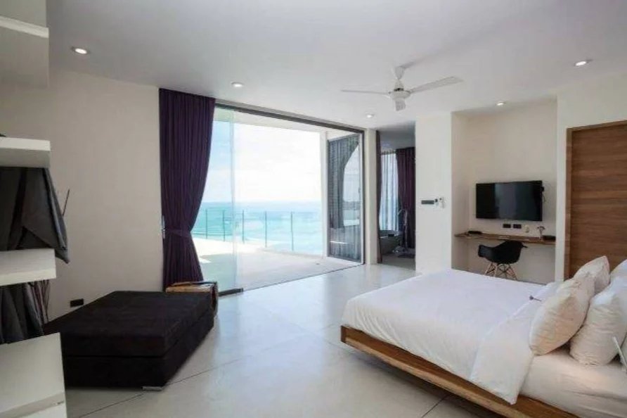 Cette villa haut de gamme avec vue panoramique sur la mer dans un emplacement privilégié sur les collines de Chaweng Noi, à seulement 10 minutes en voiture des plages, offre une vue dégagée sur l’océan à 180 degrés. Un séjour à Sky Dream Villa est une expérience pas comme les autres. Lorsque vous vous réveillez dans cette villa incroyablement positionnée avec une vue magique sur la baie de Chaweng Noi, avec le bruit des vagues qui s’écrasent en dessous de vous, vous vous sentez vraiment comme votre propre coin de paradis sur terre. Des vues spectaculaires de la terrasse, de la majestueuse piscine à débordement, de la grande baignoire en béton coulé, aux intérieurs simplement divins, aux chambres élégantes et à plusieurs salles de bains avec vue imprenable sur la mer, vous vous sentirez dans un bonheur luxueux incomparable et inégalé. Notre gestion des invités et de la villa anglophone vous accueillera avec notre personnel 24h / 24 et 7j / 7 à Koh Samui. Ils s’occupent de vos bagages et vous accompagnent dans les escaliers jusqu’à la salle à manger où la scène enchanteresse vous attend. Son concept d’espace ouvert aéré et ses baies vitrées sans cadre avec balcon privé ainsi que ses grandes terrasses communes comprennent une piscine à débordement de 25 mètres de haut, une cuisine européenne moderne, 4 chambres et des espaces de vie en duplex, le tout avec vue panoramique sur la mer. La villa est entièrement climatisée. Profitez de votre expérience cinématographique ultime sur la télévision par satellite à écran plat avec des chaînes internationales premium aux côtés d’un système audio Bose haut de gamme avec WiFi et Bluetooth dans chaque pièce. Pour tous les amateurs de sport et de jeux, un espace fitness & fun est situé au niveau inférieur comprenant tennis de table et billard. Vous ne serez jamais loin de la nature? en fait, la villa aux allures de cathédrale est naturellement refroidie par le flux d’air venant de l’océan,