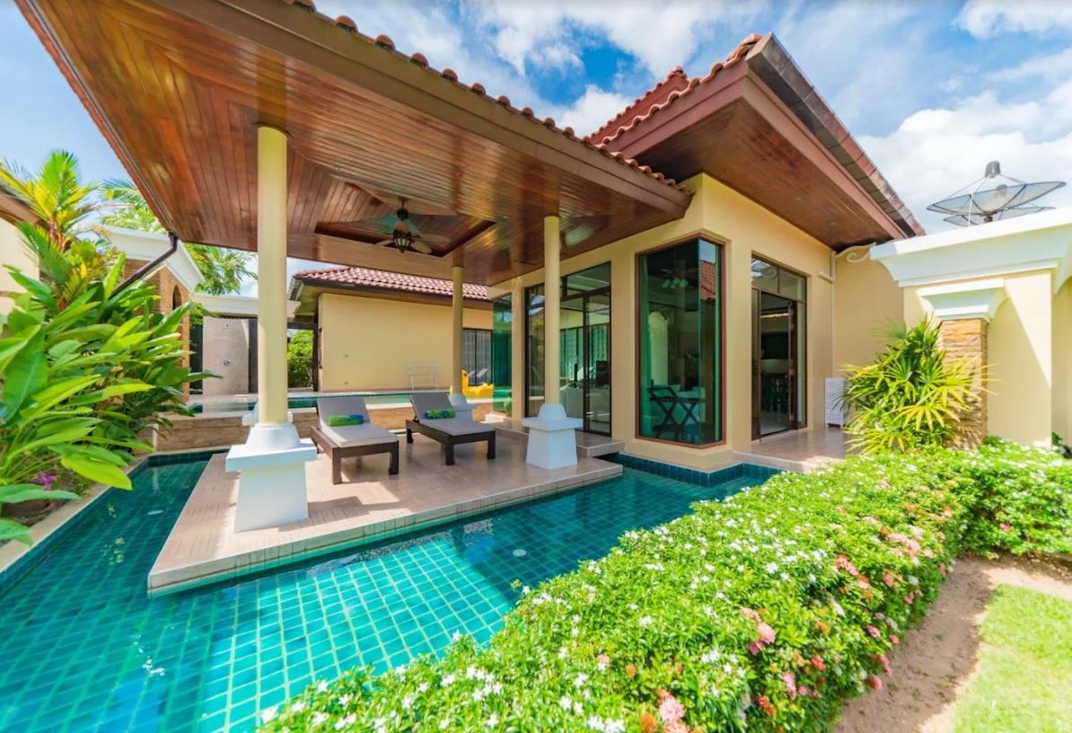 Belle villa dans un style asiatique moderne après rénovation, située dans la communauté fermée privée.