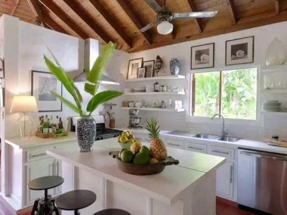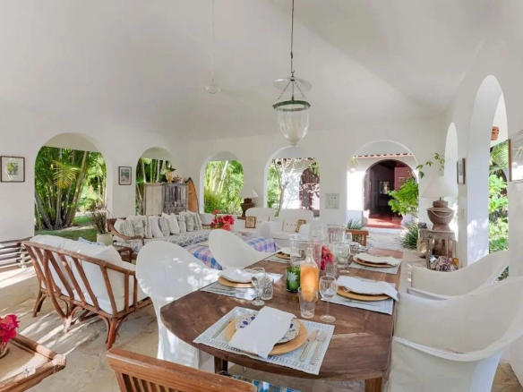 Il s’agit de la villa de plain-pied la plus attrayante et la plus spacieuse du style caribéen, avec des fenêtres à persiennes traditionnelles en acajou, des plafonds voûtés et des sols carrelés en terre cuite. Le grand salon dispose de 4 baies vitrées et de portes doubles menant au jardin arrière du belvédère et à la piscine.