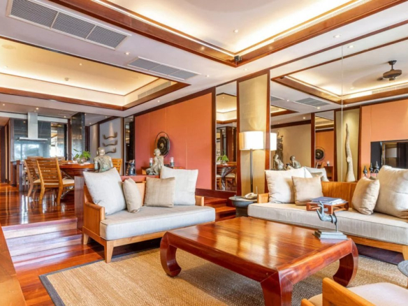 Ce luxueux appartement a été achevé en 2008 et a été bien entretenu depuis. Située dans un complexe exclusif sur le tristement célèbre Millionaires Mile à Kamala, sur la côte ouest de Phuket, la propriété offre une vue sur l’océan et le terrain montagneux des collines de Kamala. À seulement quarante minutes au sud de l’aéroport international de Phuket, cette résidence est un lieu idéal pour explorer l’Asie du Sud-Est, avec des vols directs vers tous les principaux sites de la région ainsi que le reste du monde.