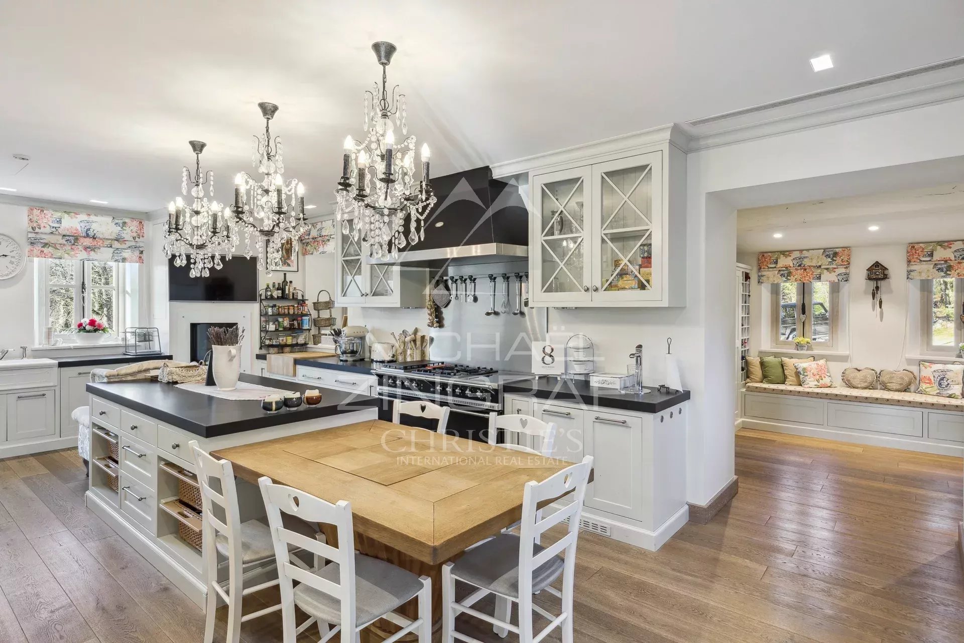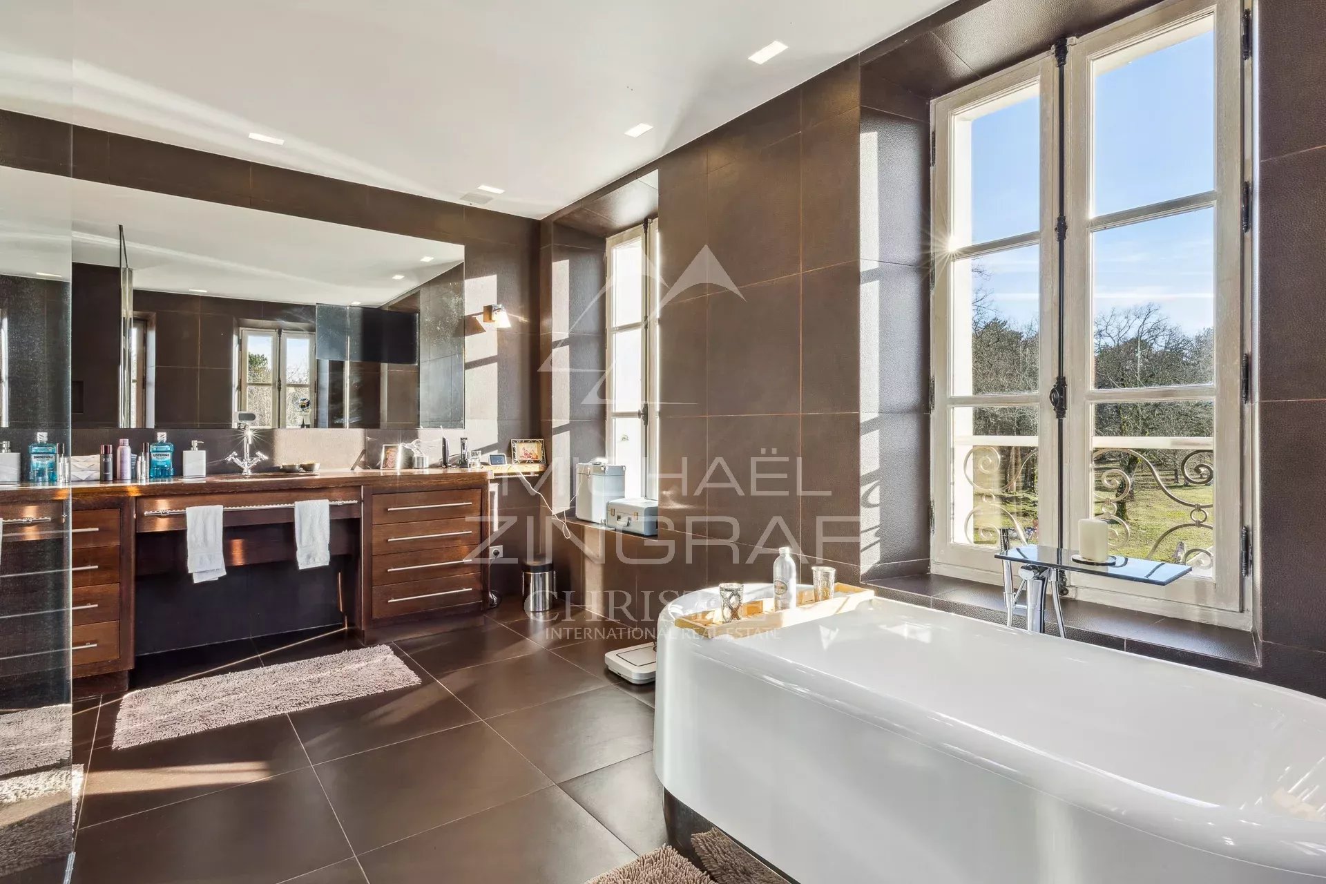 Implantée sur un terrain de plus de 12 hectares, la propriété se déploie dans un écrin de verdure préservé, avec une majestueuse allée d’entrée, une forêt paisible, des écuries et une piscine extérieure somptueusement aménagée. L’espace piscine se distingue par une cuisine d’été, un bar élégant, un terrain de tennis et une aire de jeux pour enfants, créant ainsi un lieu de détente et de divertissement sans égal.