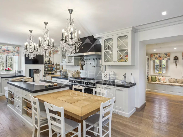 Alliant charme intemporel et matériaux nobles de haute qualité, ce manoir unique vous invite à découvrir un spacieux séjour baigné de lumière, prolongé par un vaste espace repas ouvert sur une terrasse accueillante, parfaite pour savourer des moments conviviaux. La cuisine, magnifiquement équipée, répond aux exigences des plus fins gastronomes, avec des installations modernes et haut de gamme, idéales pour concocter des plats d’exception.