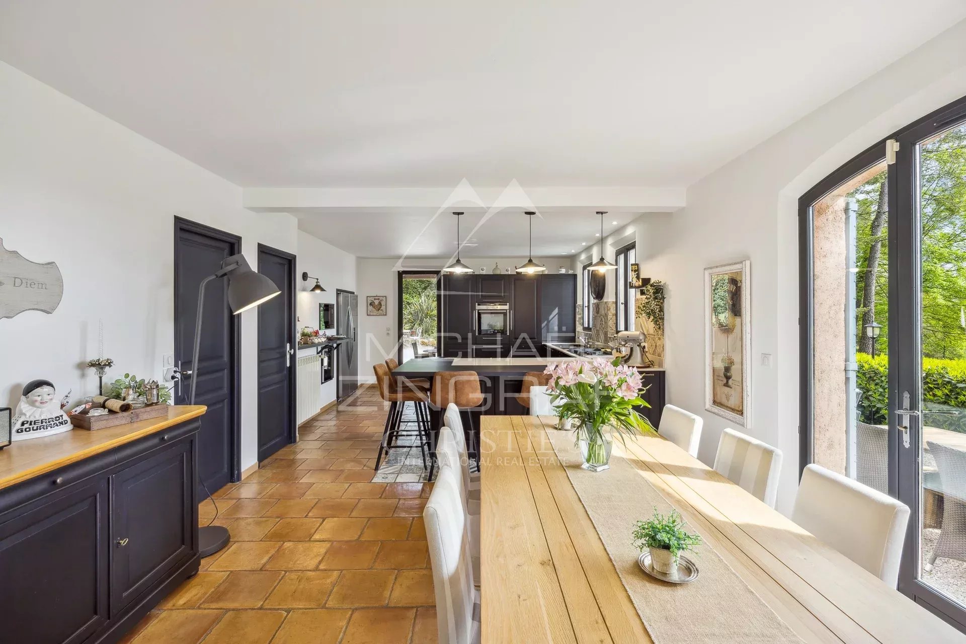 Nichée au cœur d’un domaine privé de 1,2 hectare, cette élégante bastide profite d’un emplacement privilégié, offrant un cadre de vie paisible aux vues dégagées, à seulement quelques minutes de Fayence et Tourrettes.
