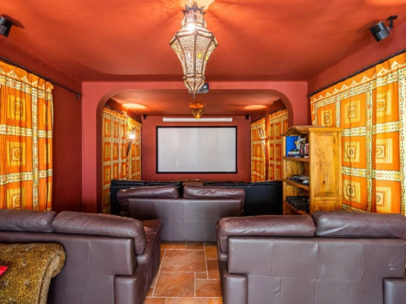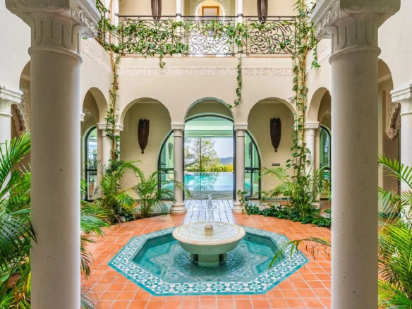 Running the full height of the villa, the central atrium offers all the benefits of the traditional atriums which are featured in the most prestigious historic Andalucian buildings. The glass-roofed atrium fills the property with light and showcases the many intriguing Moorish style features built into the villa. A water feature is located at the base of the atrium on the lower ground floor, further adding to the unique feeling of space and tranquillity offered to all floors. The electrically retractable glass roof ensures the atrium captures the heat in the cooler winter months and, once opened, ventilates excess heat on the hottest summer days.