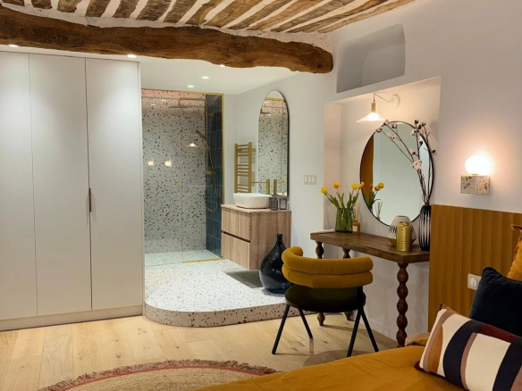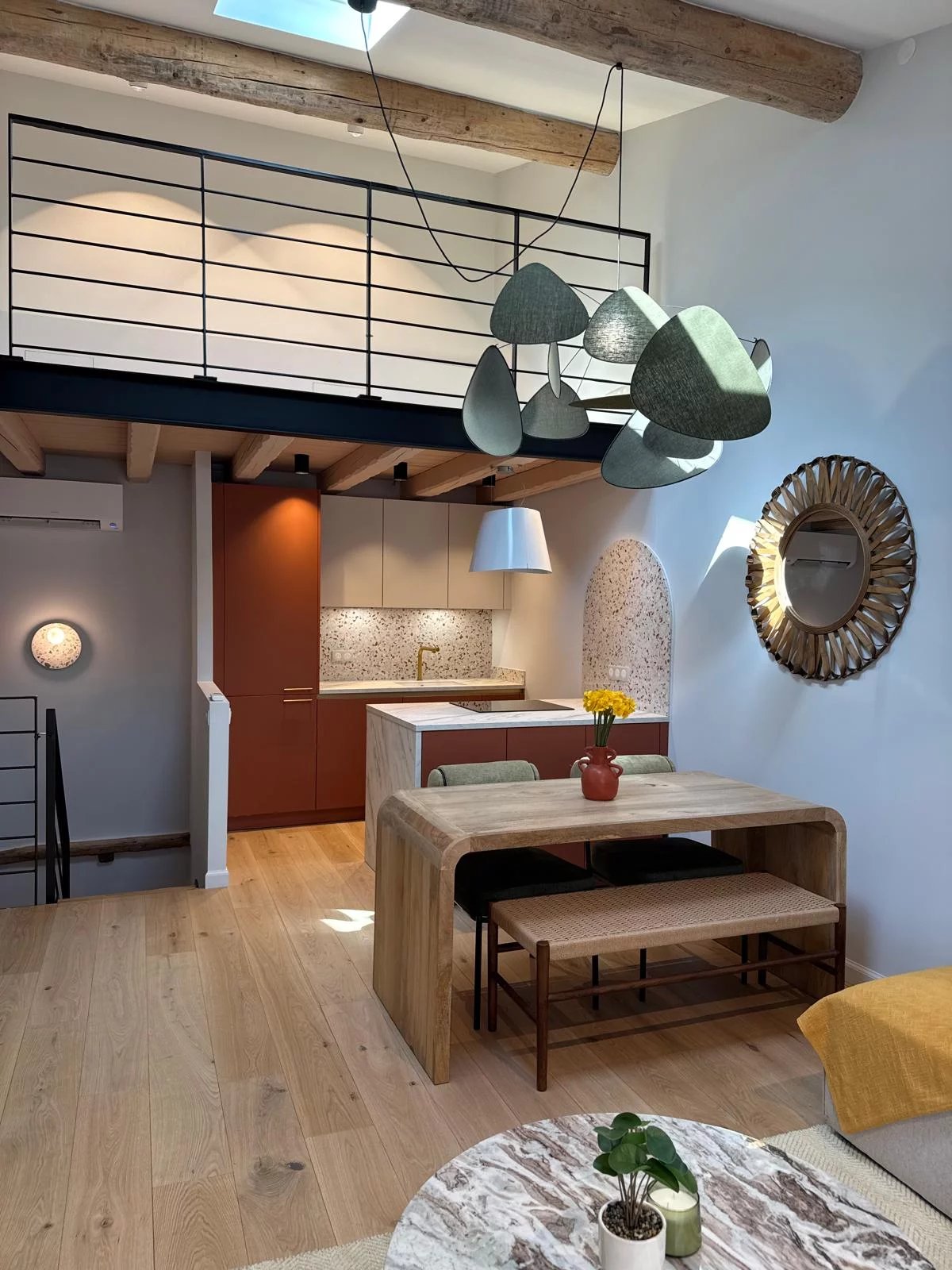 Vendue meublée avec goût et élégance, elle offre un intérieur harmonieux, pensé dans les moindres détails : chambres en suite, espace de vie convivial avec cuisine équipée, mezzanine polyvalente et coin bureau idéal pour le télétravail. Le charme de l’ancien s’y mêle subtilement au confort moderne, avec climatisation réversible et rangements intégrés.
