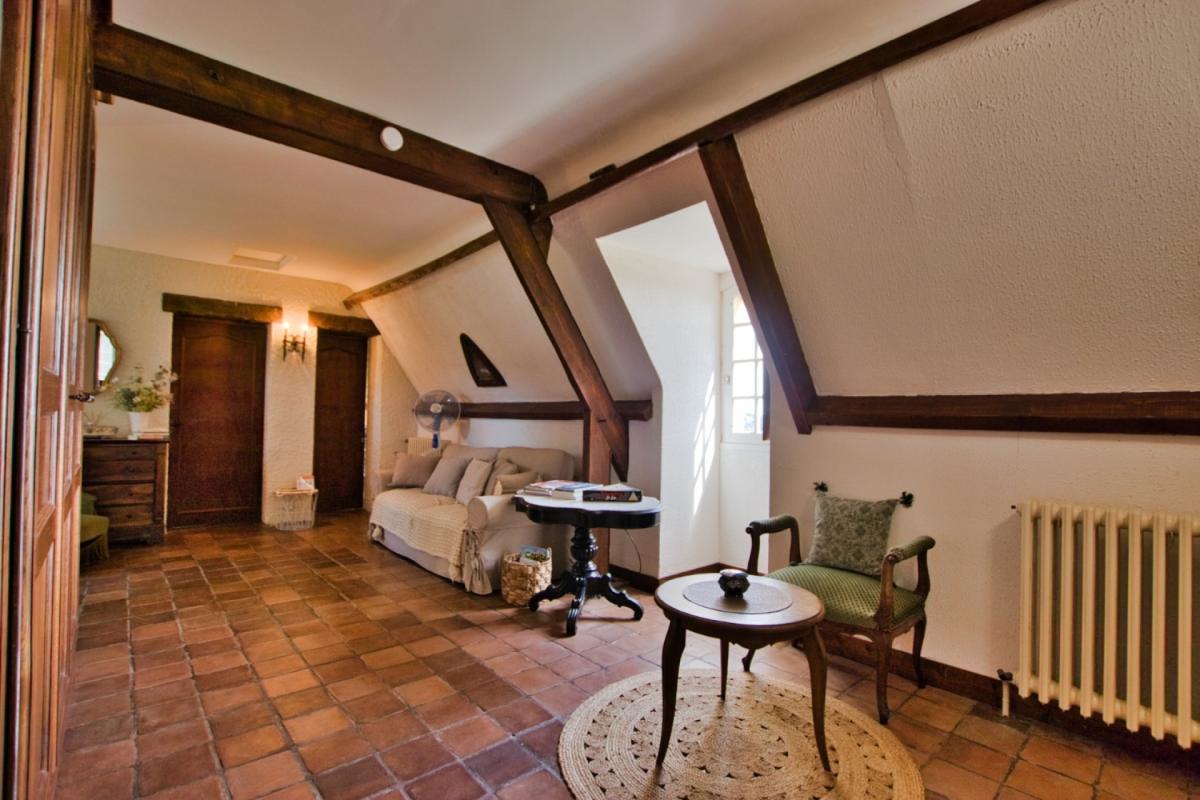La maison principale développe 145 m2 avec une entrée qui s’ouvre sur une cuisine équipée de 19 m2 , un salon séjour avec cheminée, poutres apparentes d’environ 45 m2 ouvrant sur la terrasse panoramique , une belle chambre sur parquet avec placard , une salle d’eau, les wc sont séparés; à l’étage , un grand pallier distribue 3 chambres , une salle d’eau, et un WC séparé.