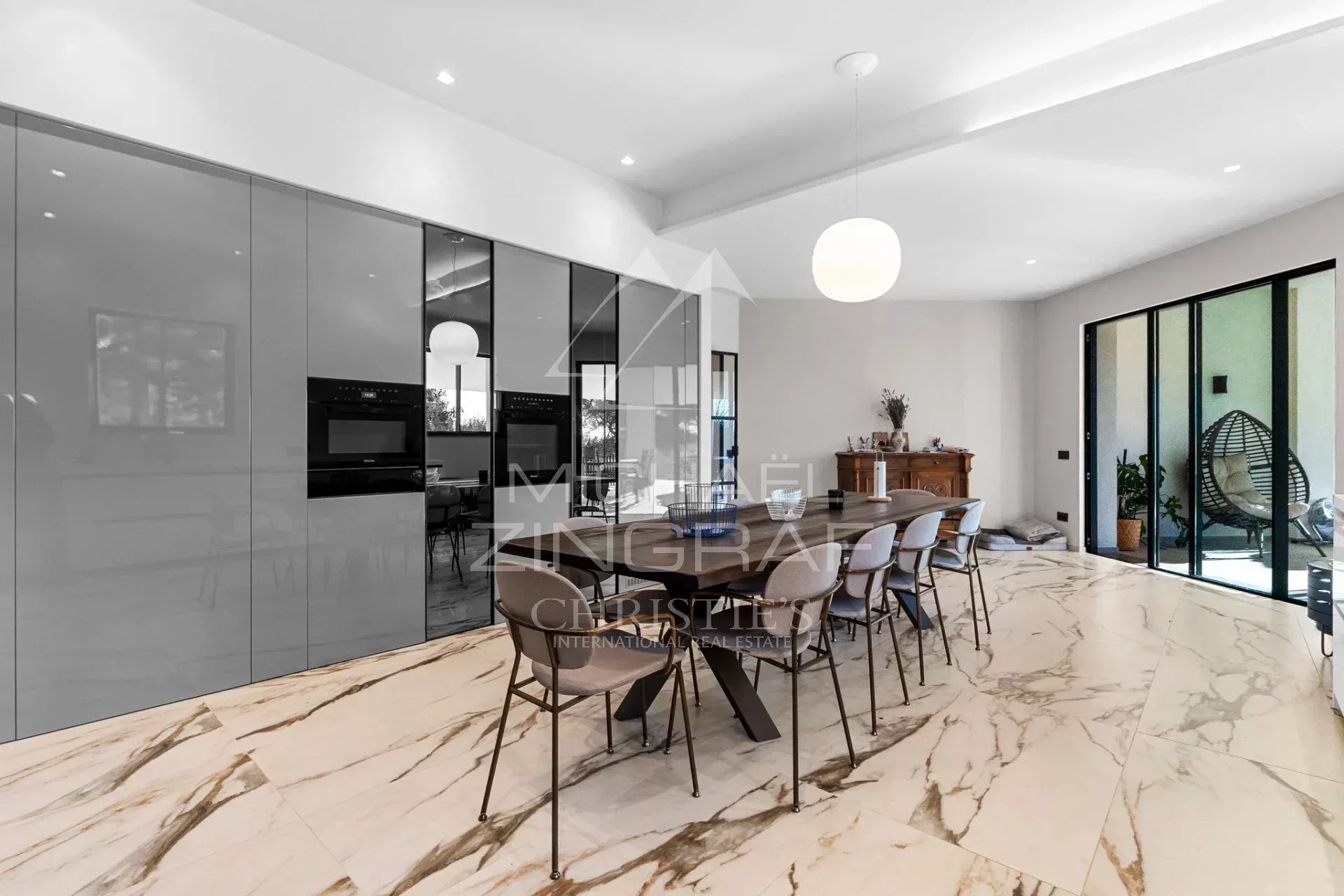 Lignes épurées, volumes impressionnants, lumière omniprésente : la propriété affirme un style moderne et élégant, pensé pour une vie intérieure-extérieure fluide. Les vastes terrasses et le jardin offrent un cadre idéal pour recevoir ou se ressourcer, en toute intimité.
