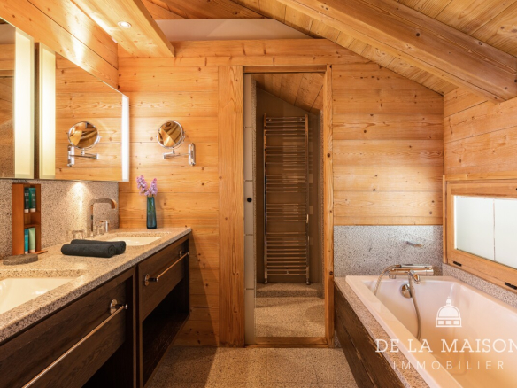 Idéalement situé dans le secteur prisé des Chavants aux Houches, à deux pas des télécabines du Prarion, ce chalet bénéficie d’un environnement alpin extraordinaire. Vous profiterez d’une vue dégagée à 180° embrassant toute la vallée de Chamonix et la majestueuse chaîne du Mont-Blanc. Niché au calme, en lisière de forêt, le chalet offre une atmosphère intimiste parfaitement intégrée à la nature, loin de l’agitation tout en restant à quelques minutes du centre de Chamonix. Un véritable havre de paix au pied des pistes, dans l’un des panoramas de haute montagne les plus spectaculaires.